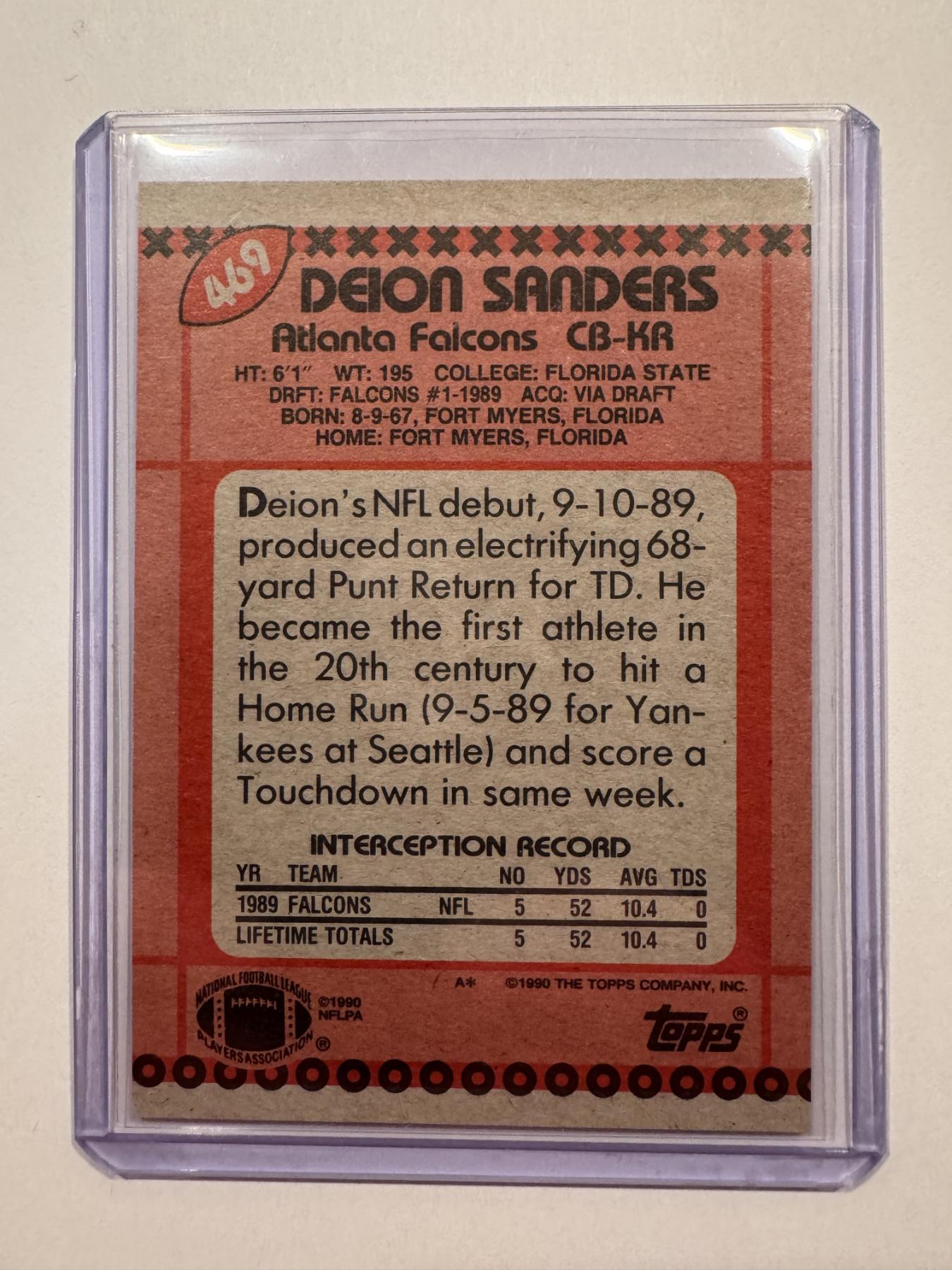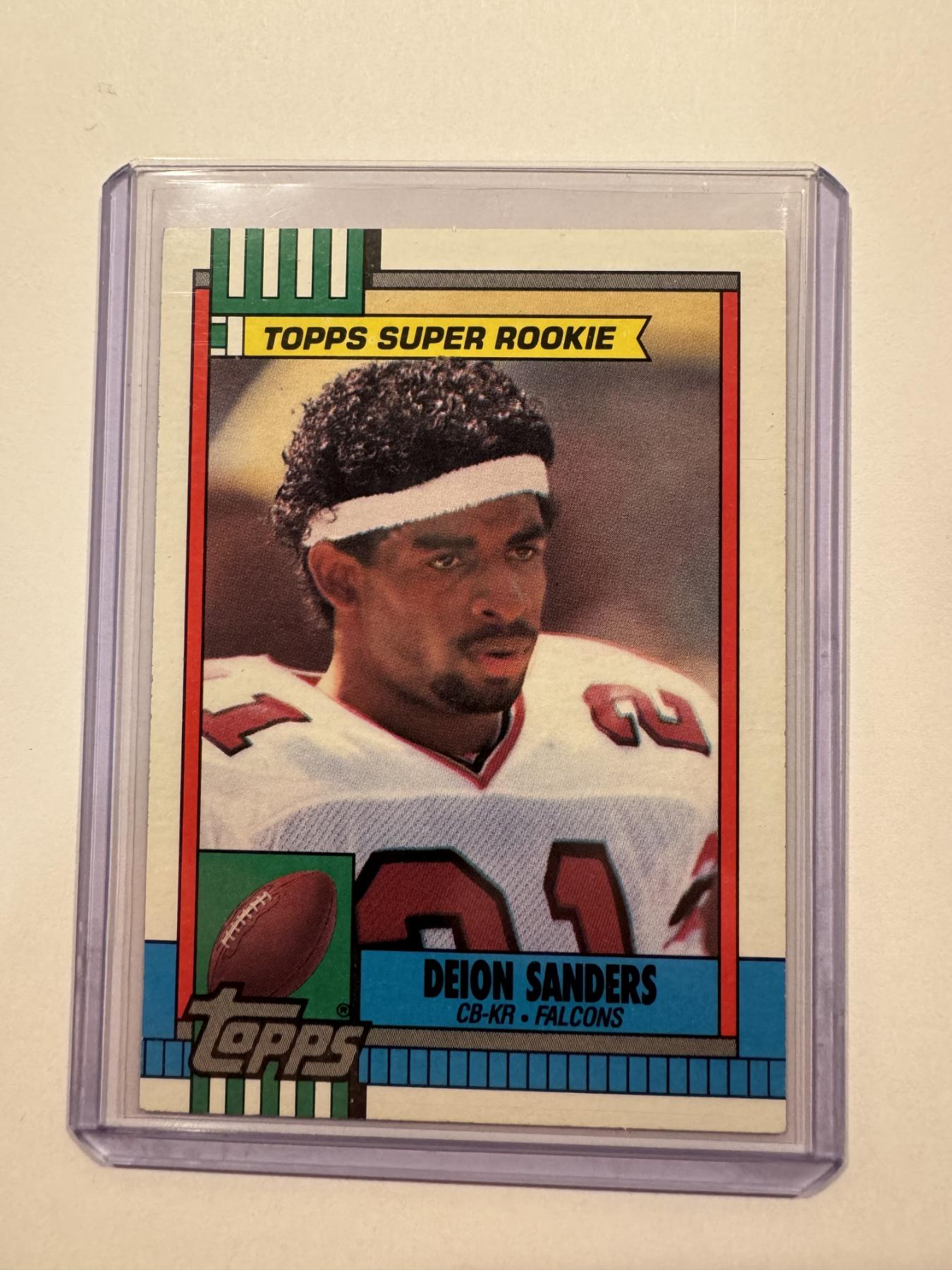 1990 Topps DEION SANDERS ROOKIE Football Card In Protective Holder - Mint Condition