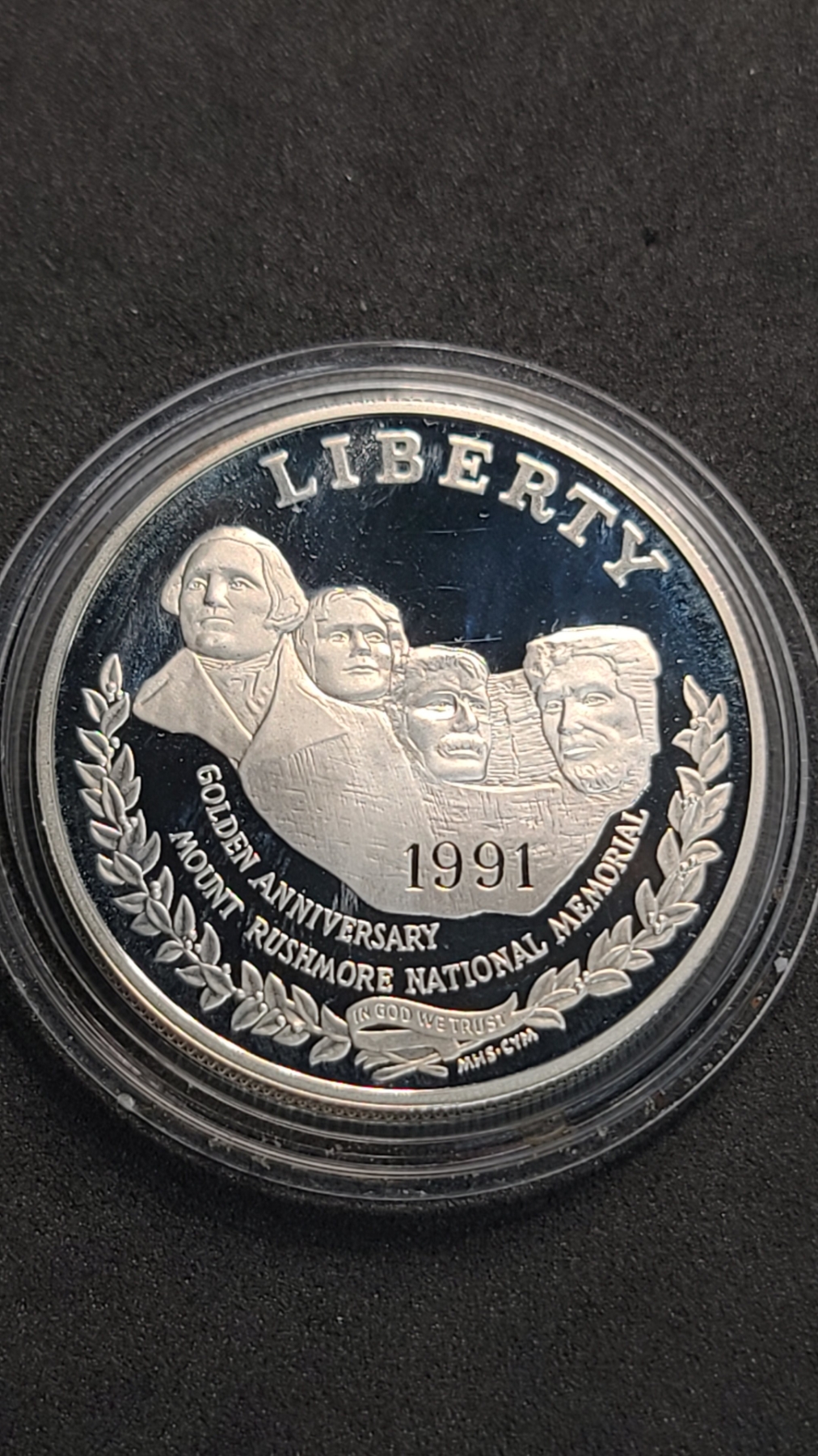 1991-S Danbury Mint Mt. Rushmore Golden Anniversary 90% Fine Silver Commemorative Proof Dollar