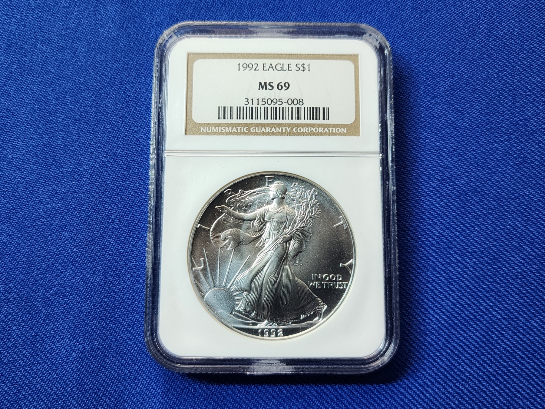 1992 $1 Silver American Eagle 1 oz Fine Silver Graded MS 69 by NGC