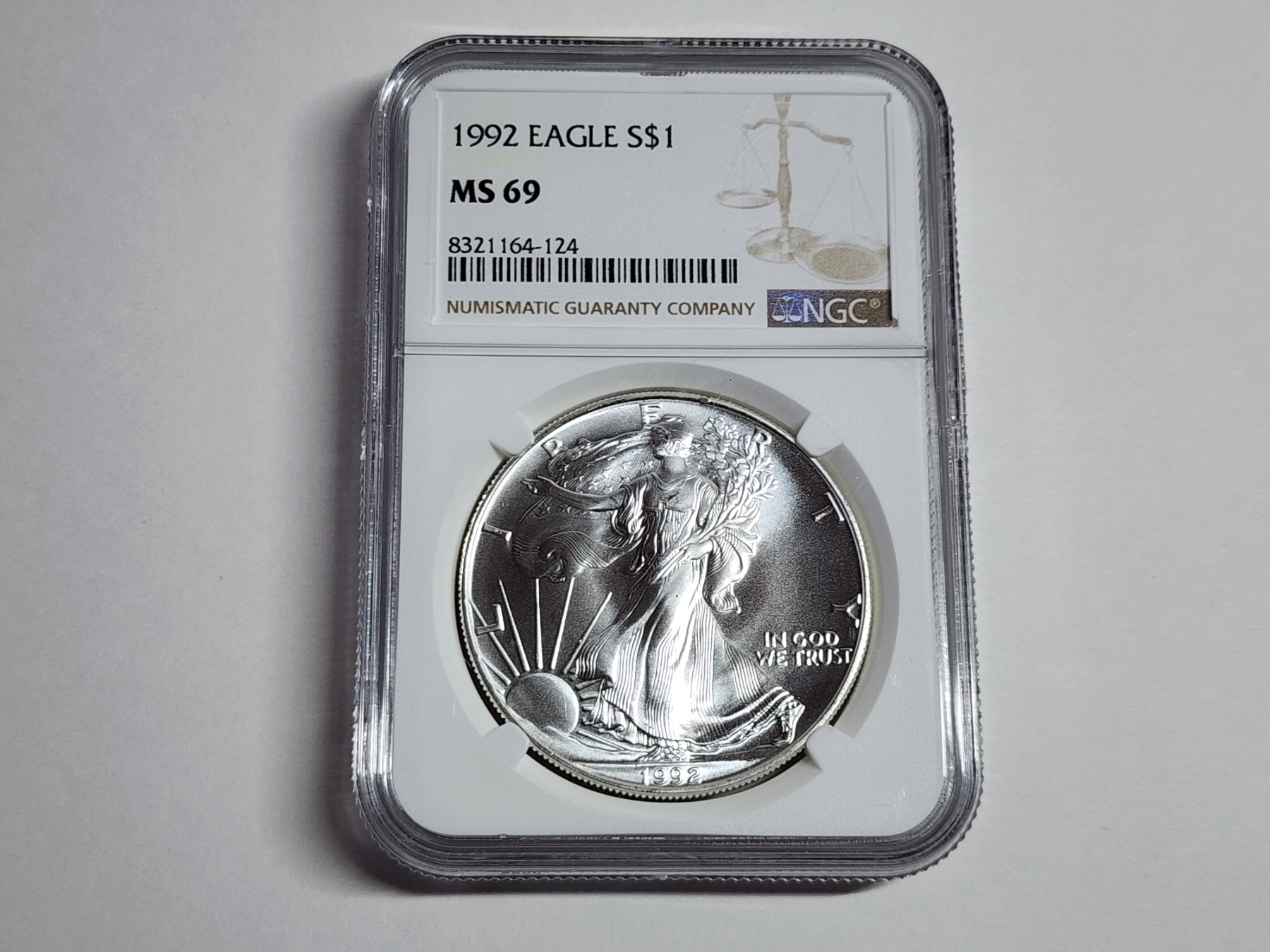 1992 American Silver Eagle 1 oz Fine Silver Graded NGC MS 69