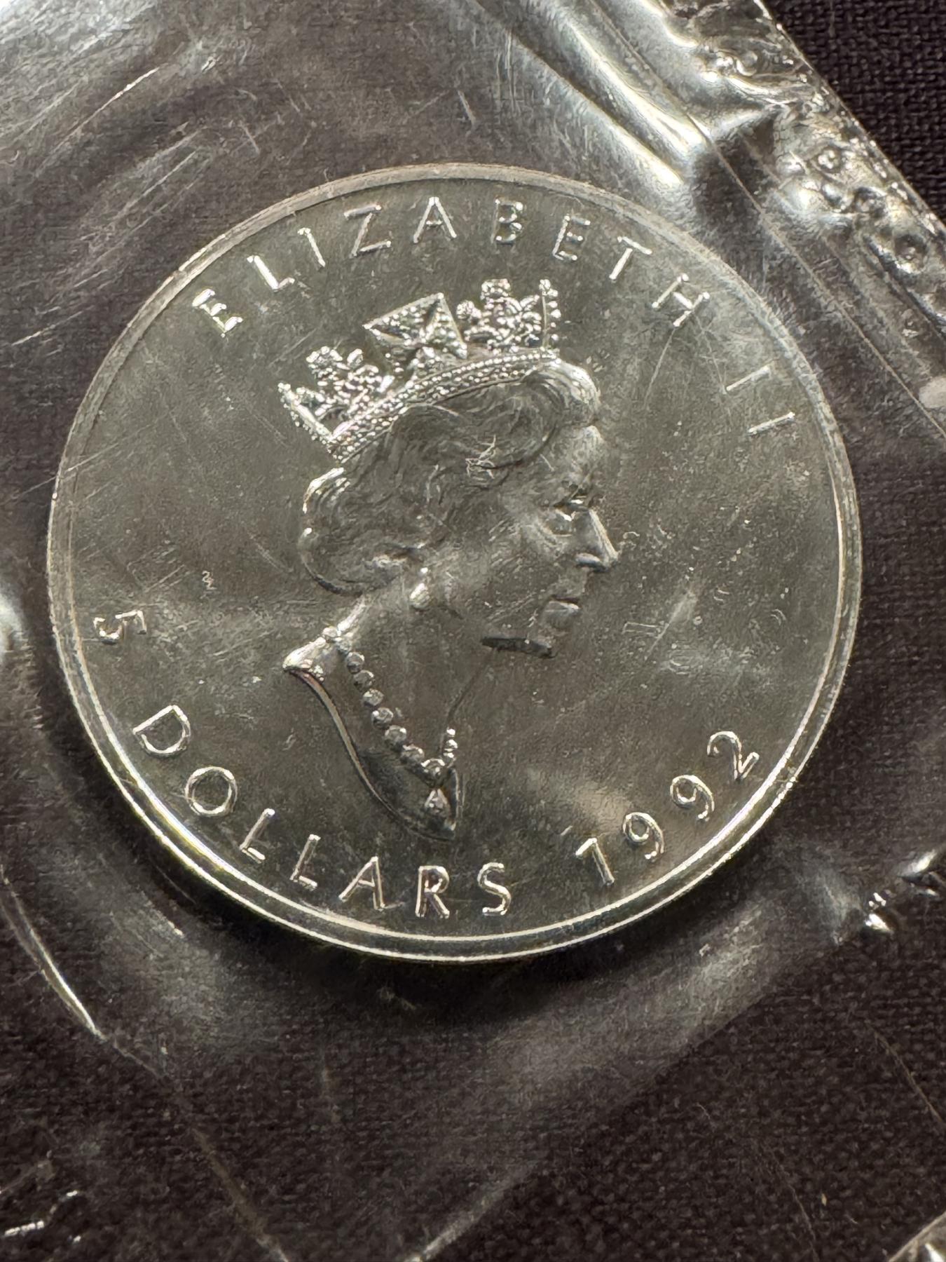 1992 Canadian Maple Leaf One Troy Ounce .9999 Fine Silver Coin - Mint