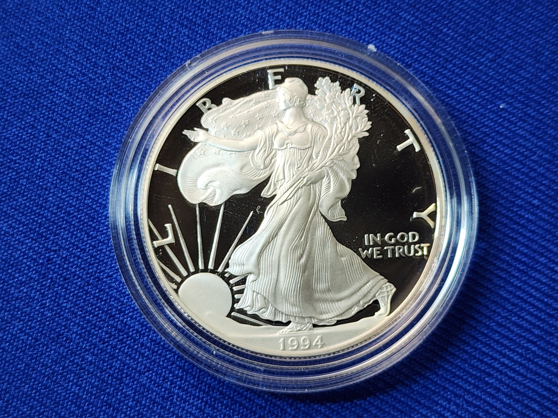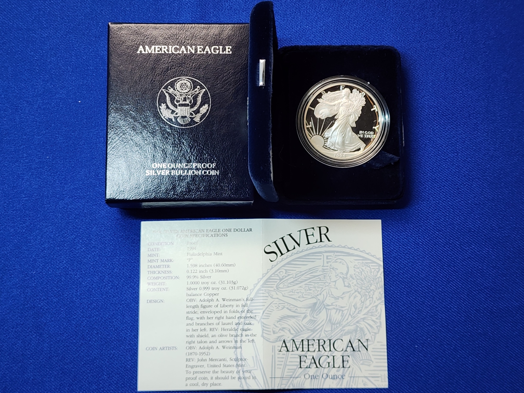 1994 Silver American Eagle $1 Proof - 1 Troy Ounce 99.9% Silver w/ Original Box & COA