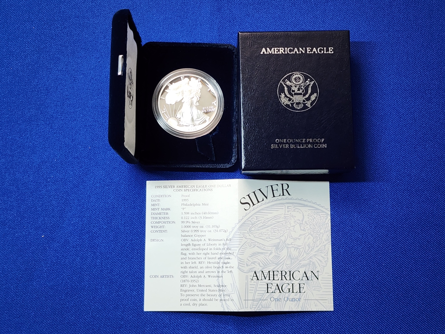 1995 Silver American Eagle $1 Proof - 1 Troy Ounce 99.9% Silver w/ Original Box & COA