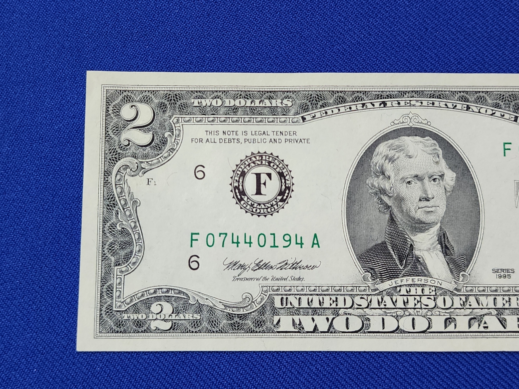 1995 United States $2 Bill - Excellent Condition
