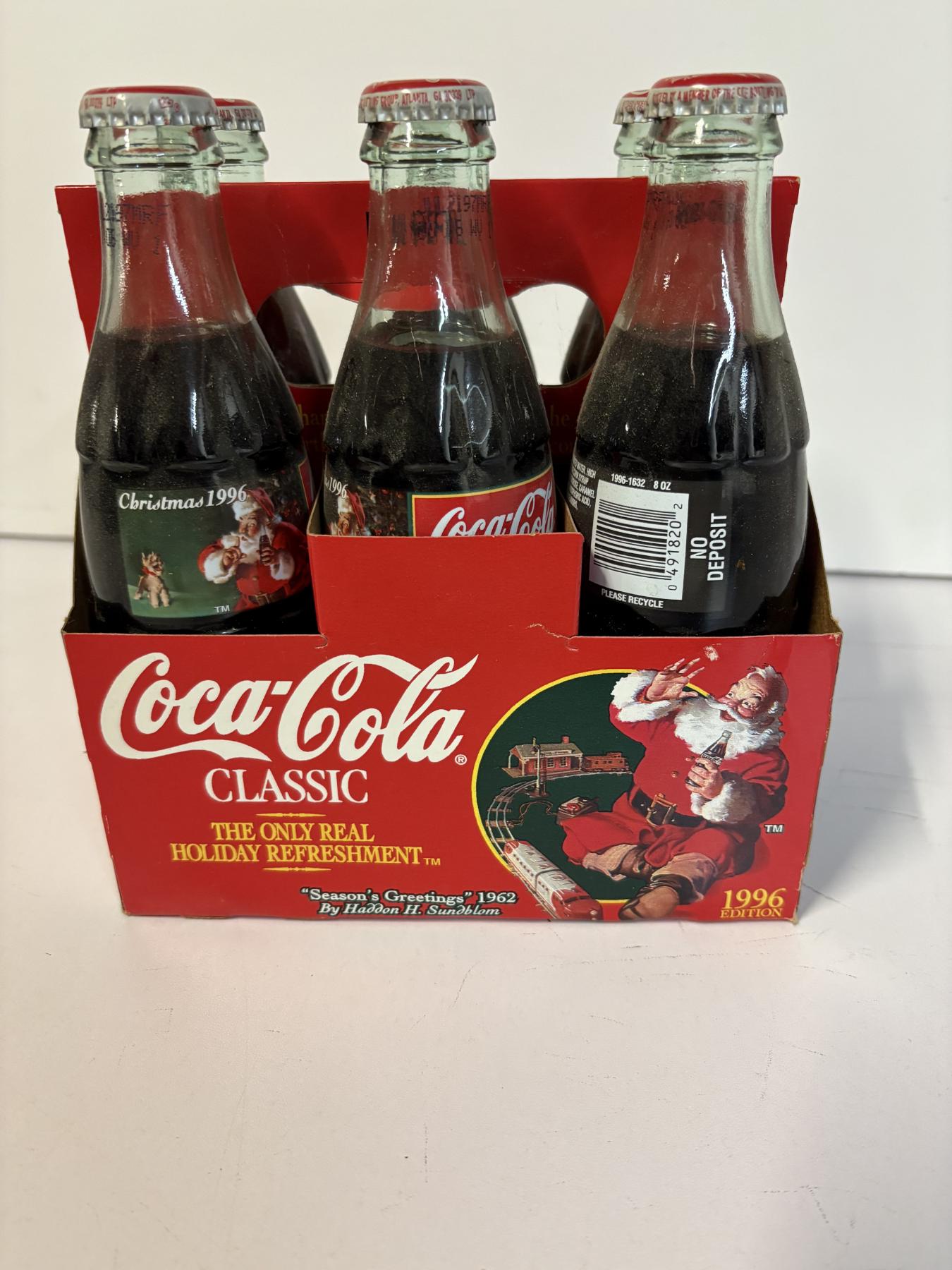 1996 Edition Coca-Cola Classic 6 pack Bottles - Christmas 1996 - 8 Fl oz each