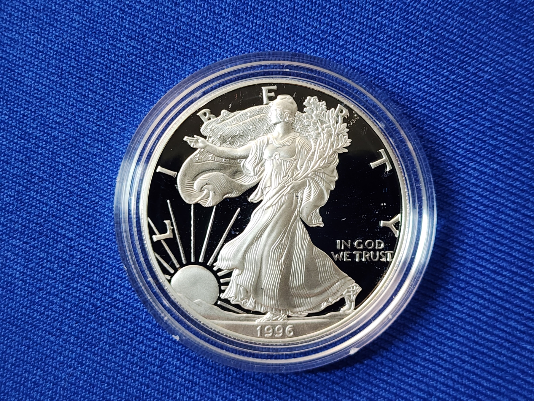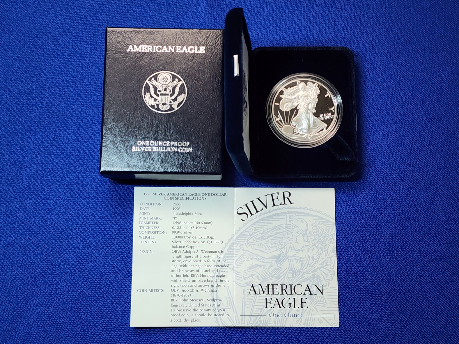 1996 Silver American Eagle $1 Proof - 1 Troy Ounce 99.9% Silver w/ Original Box & COA