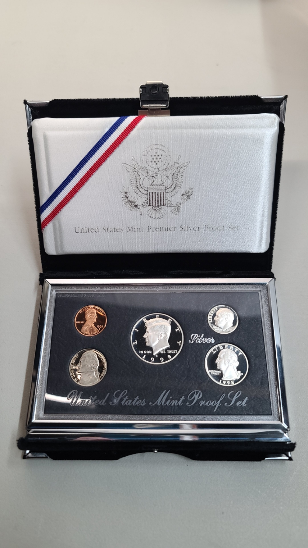 1998-S US Mint Premier Silver Proof Set. Can Be Folded Out For Display.