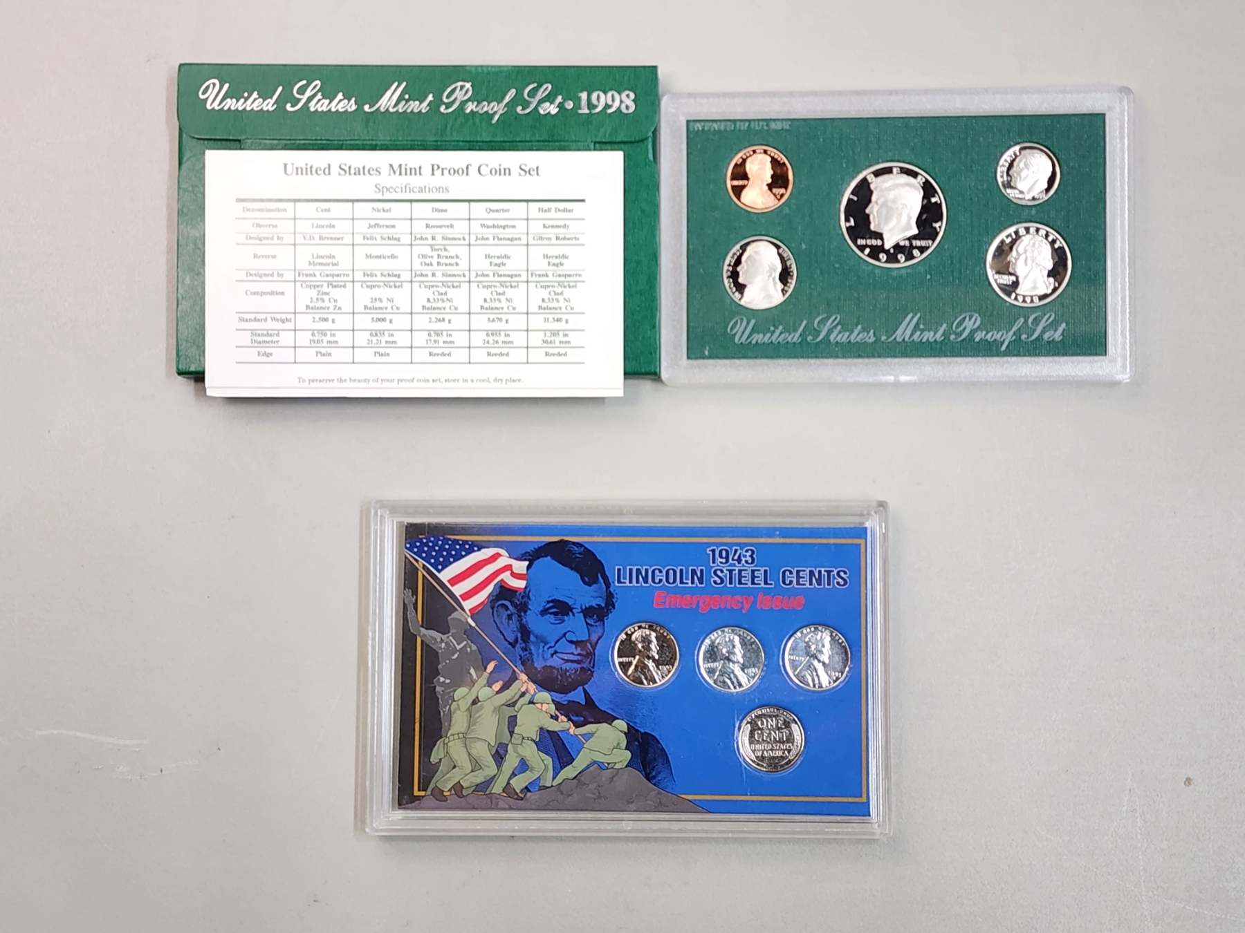 1998 United States Mint Proof Set & 1943 Lincoln Steel Cents Collection Set