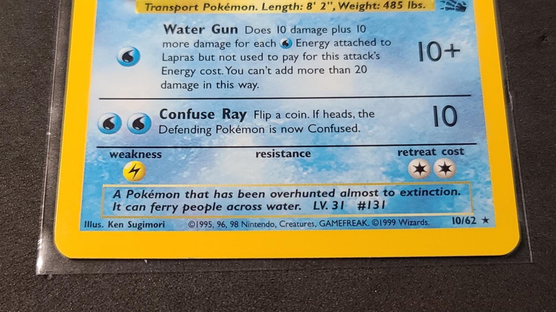 1999 Lapras 10/62 Holo Rare Pokemon Trading Card From The Fossil Set