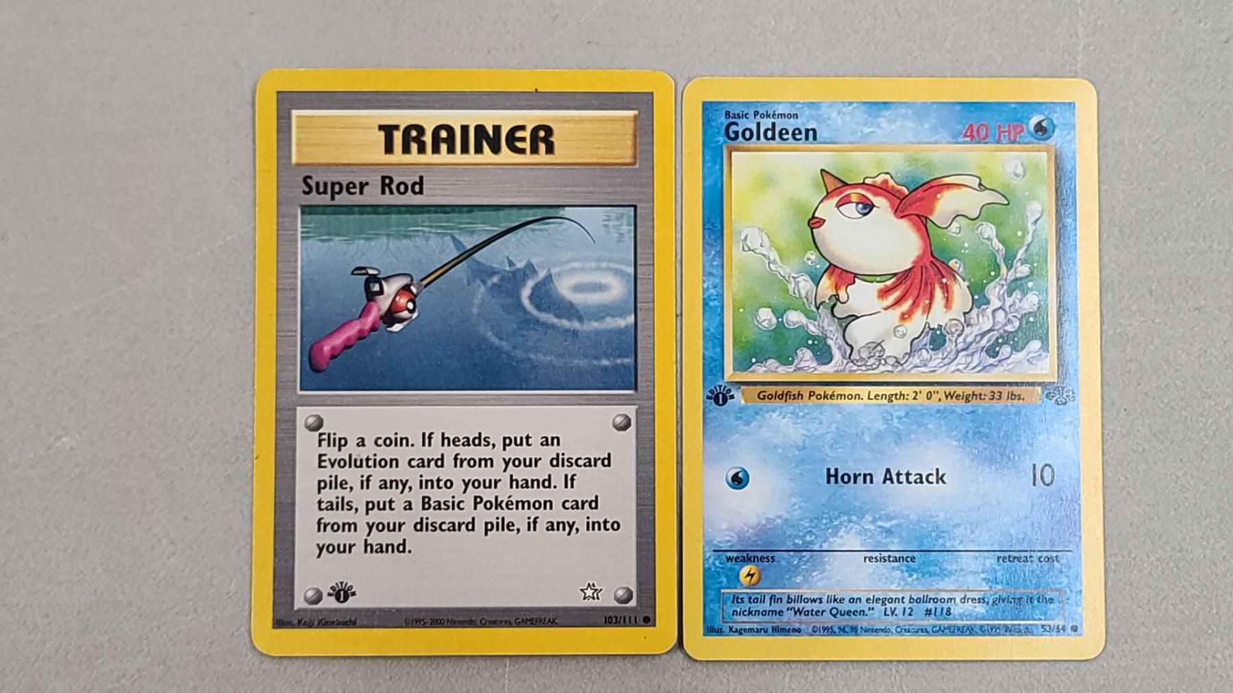1999 Pokemon Jungle 1st Edition Goldeen & Super Rod #103 Neo Genesis Trainer Card