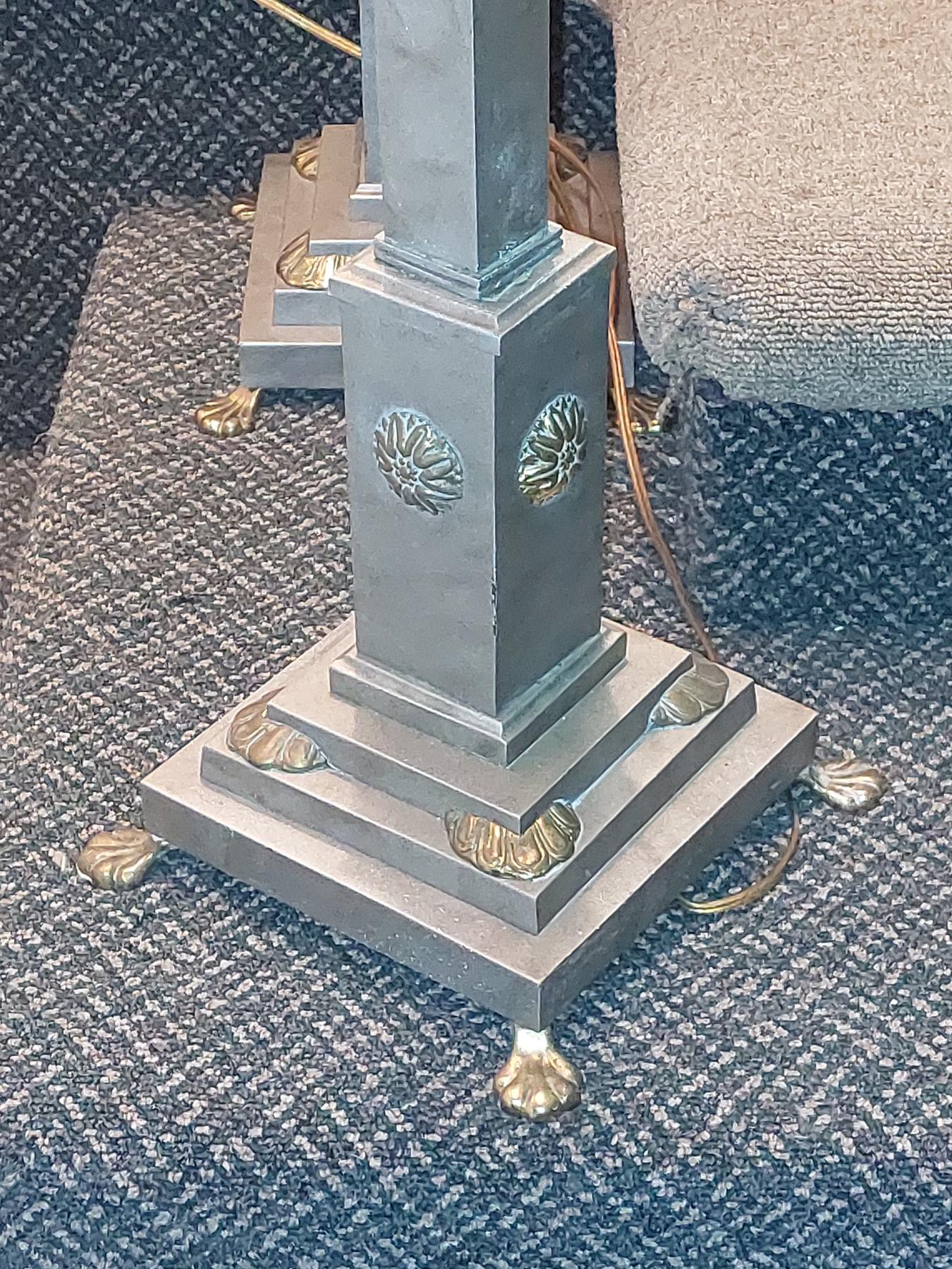 1st Of Two (2) Offered - 60" Tall Brushed Steel Floor Lamp With 12 x 14 x 10 Inch Shade - Exc Condition