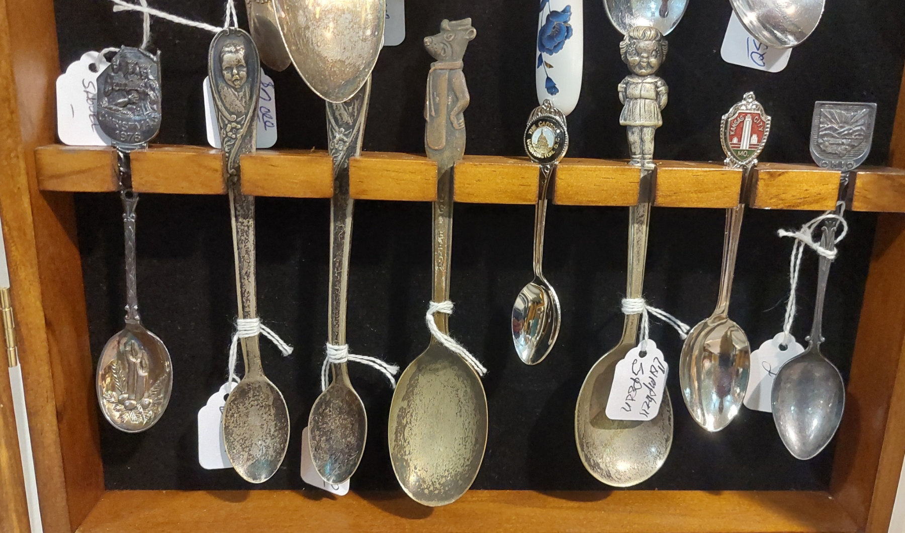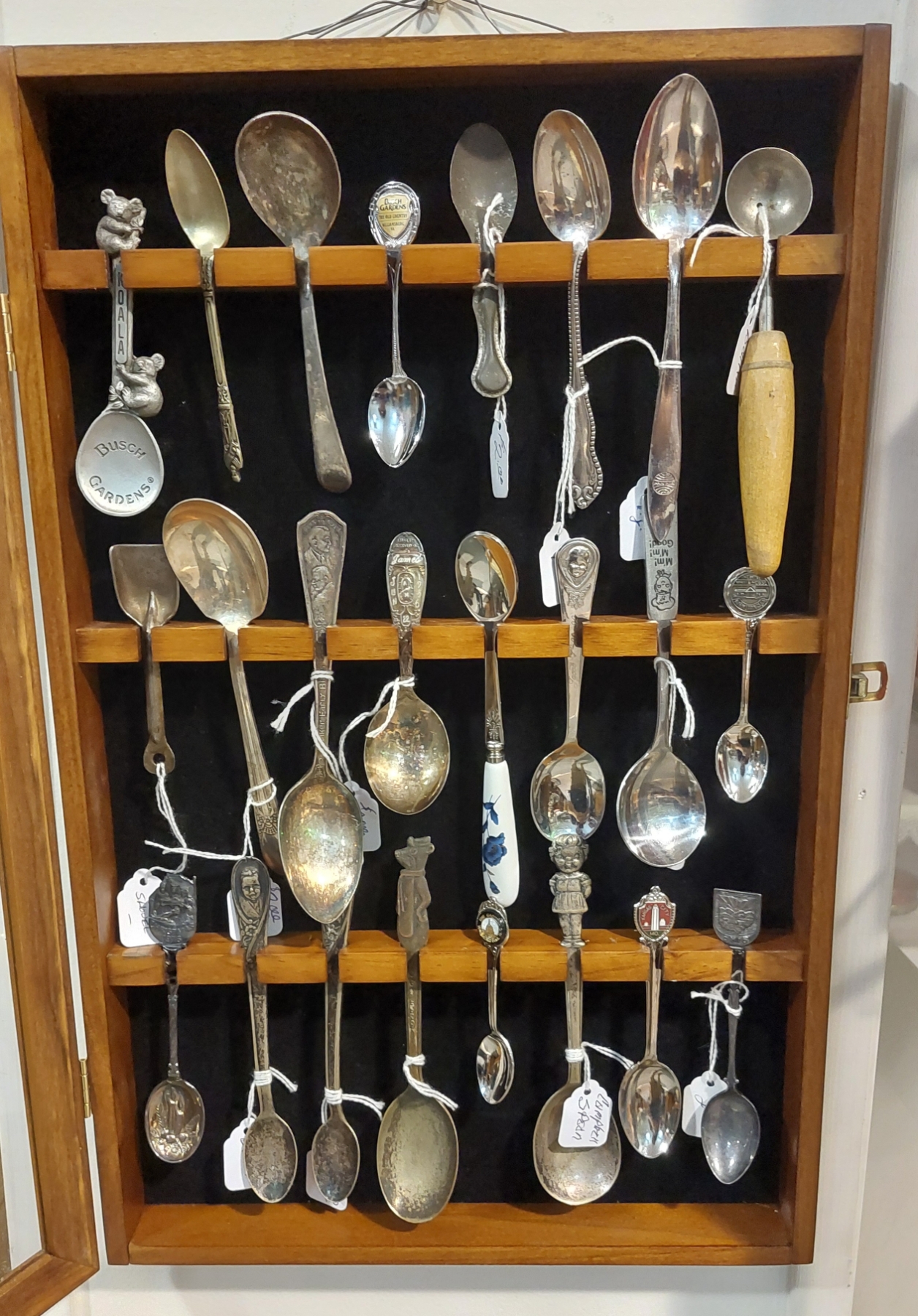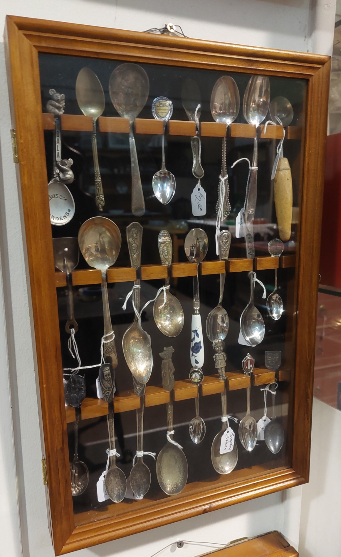 1st Of Two: 24 Silver Plate Collector Spoons In Walnut Display Case - A Superb Value & Great Collection!