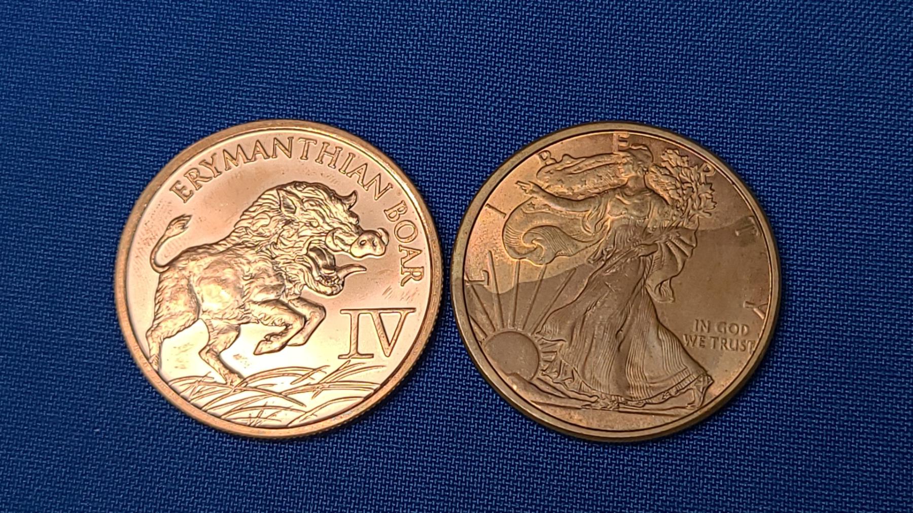 (2) 1 ADVP Oz .999 Fine Copper Rounds - American Eagle/Erymanthian Boar