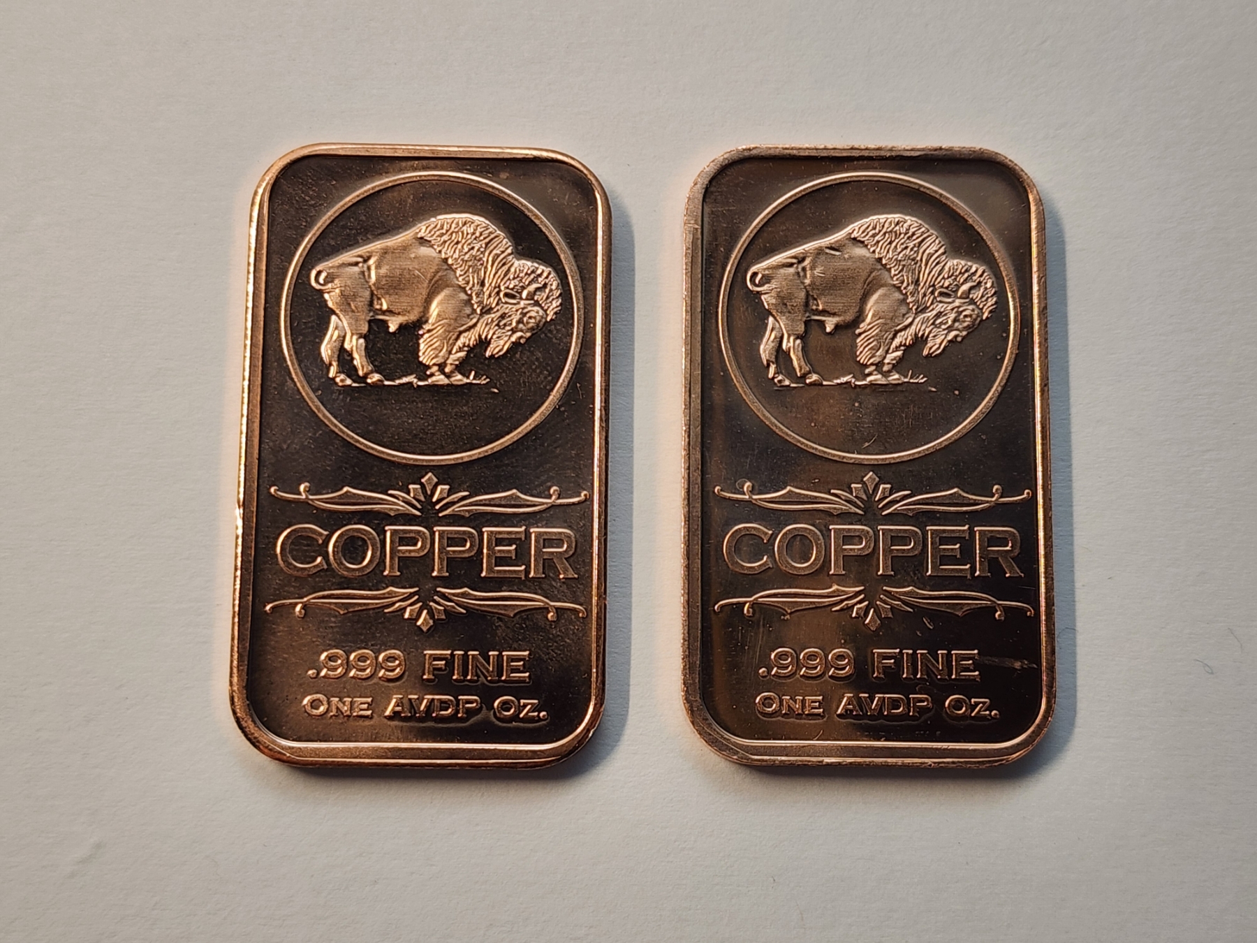 (2) 1 AVDP ounce .999 Fine Copper Bars ft. Buffalo Design - 2 oz Total