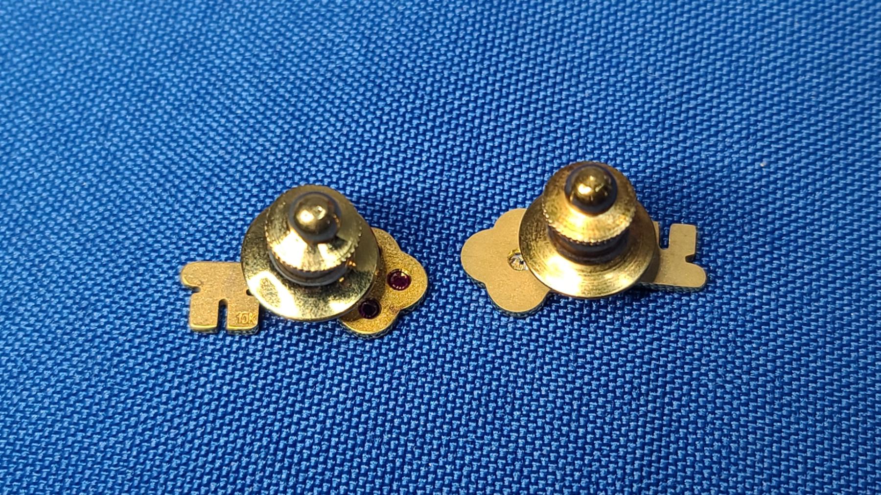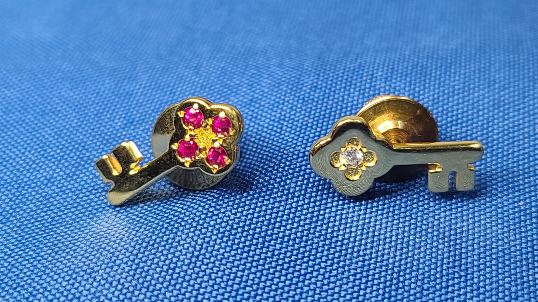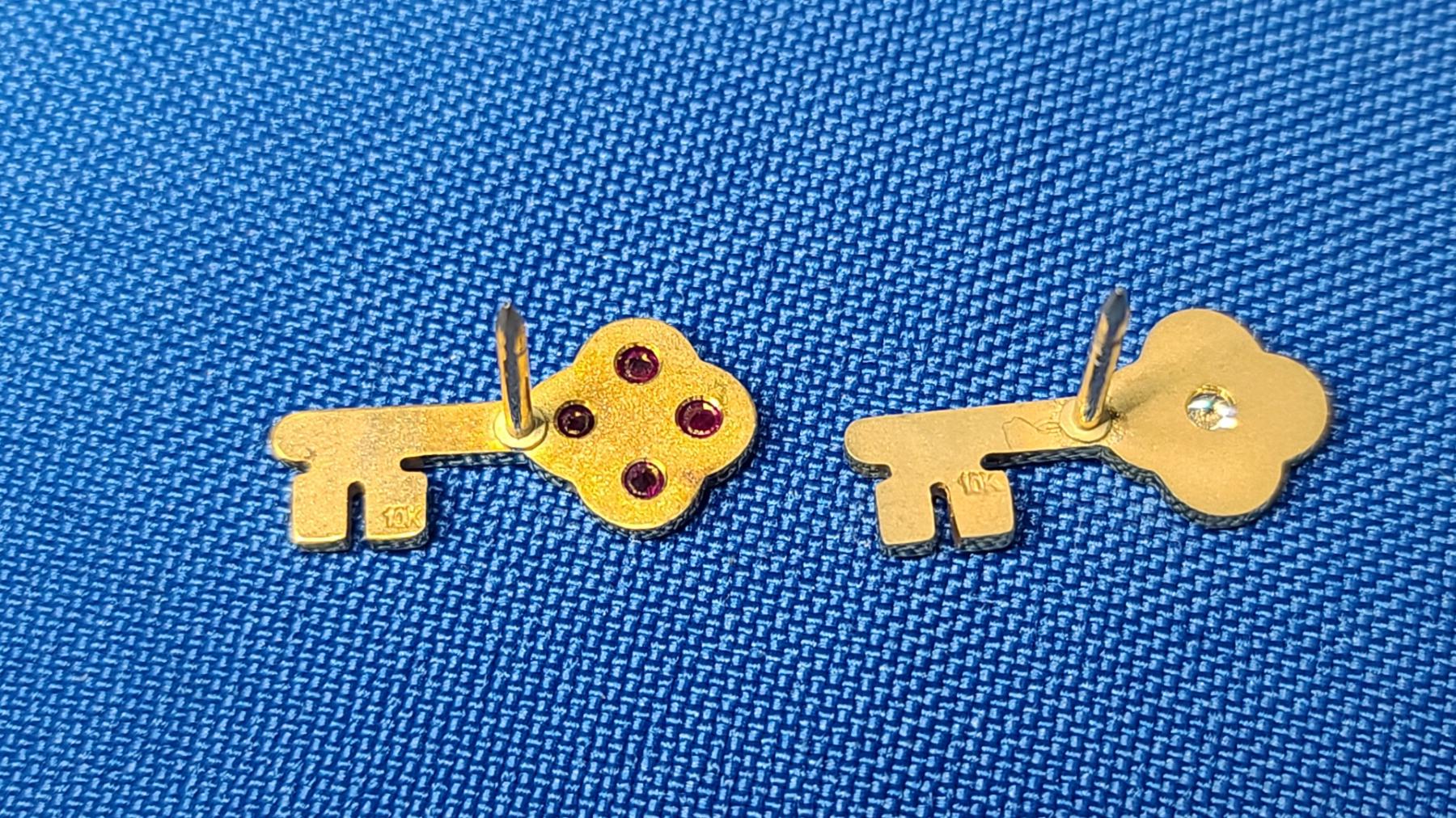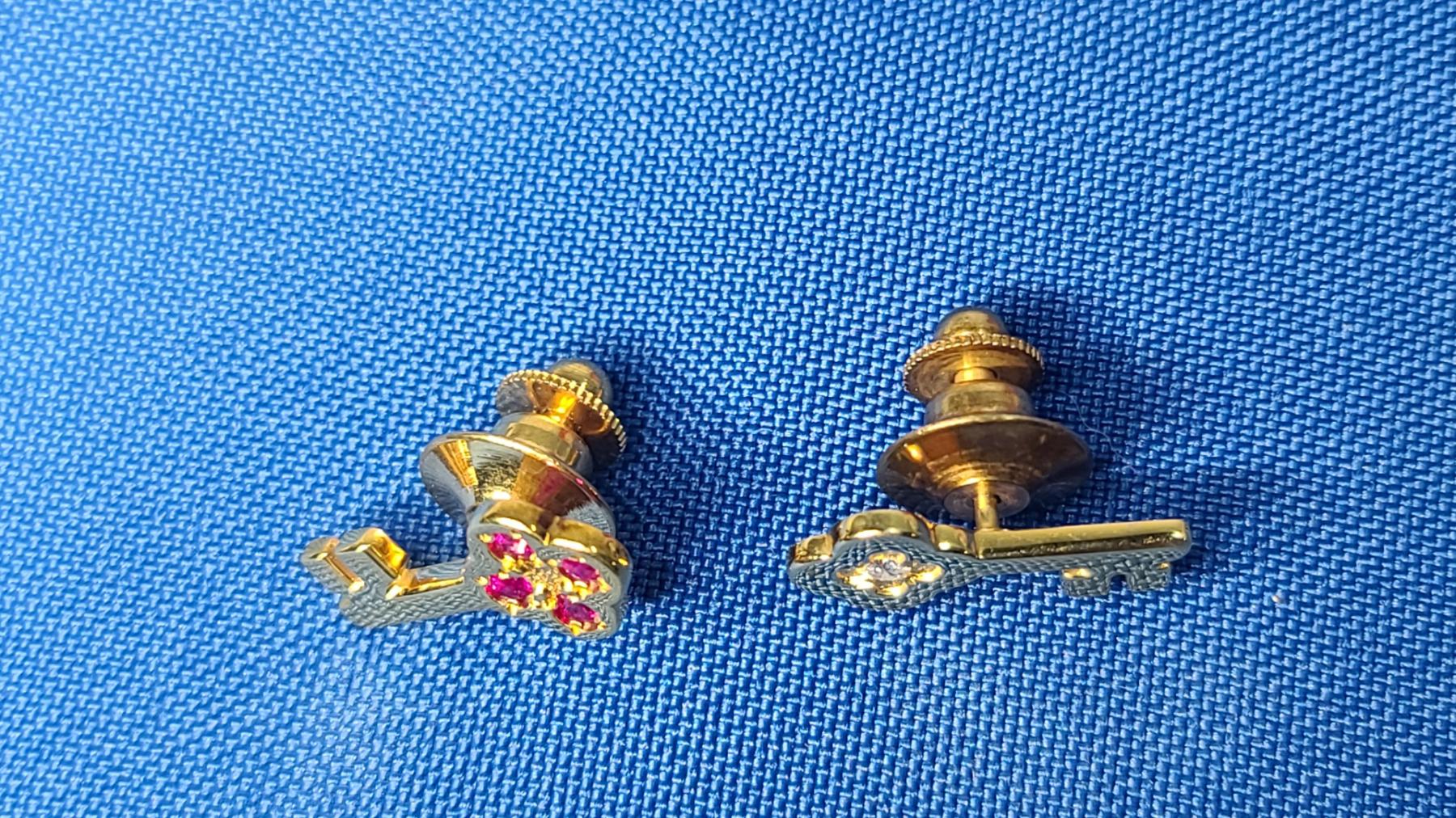 (2) 10K Gold Key Bank Pins One With Diamond & One With Ruby - Weight: 3.0g