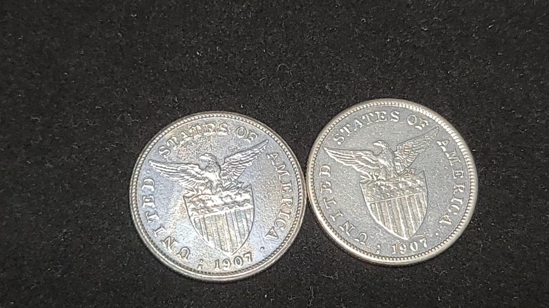 (2) 1907 S Philippines 80% Silver 1 Peso Under U.S. Administration - ASW Per Coin: 0.5144 oz
