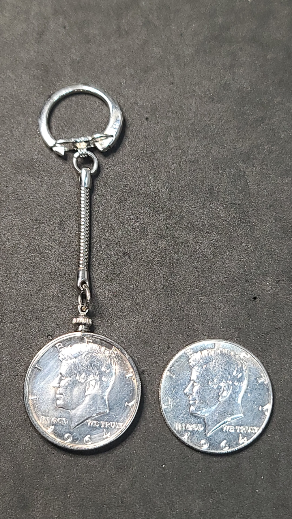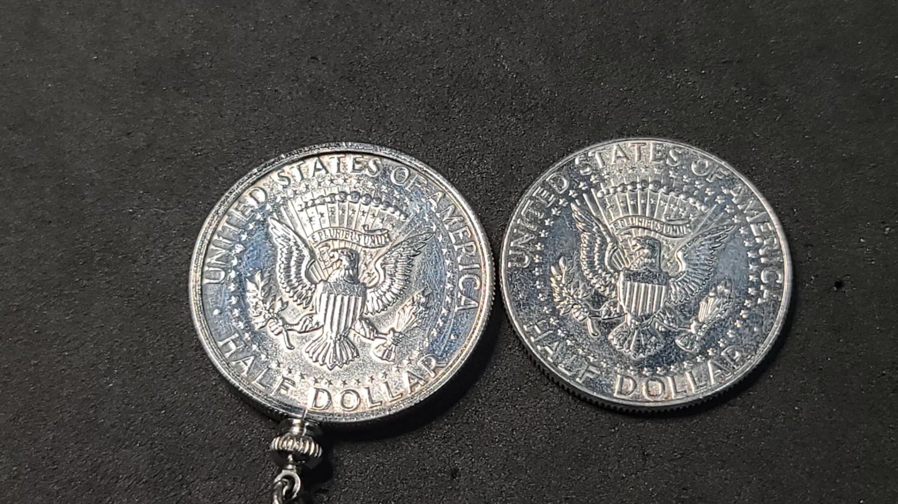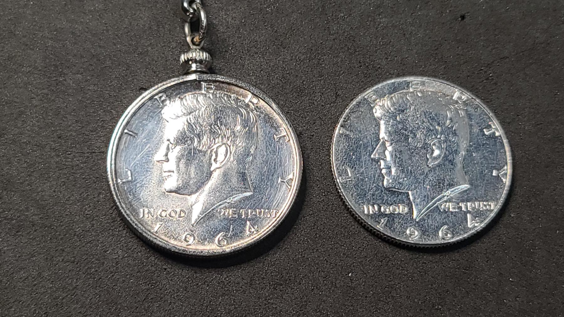 (2) 1964 90% Silver Kennedy Half Dollars - One Is In Keychain Bezel - Face Value: $1.00