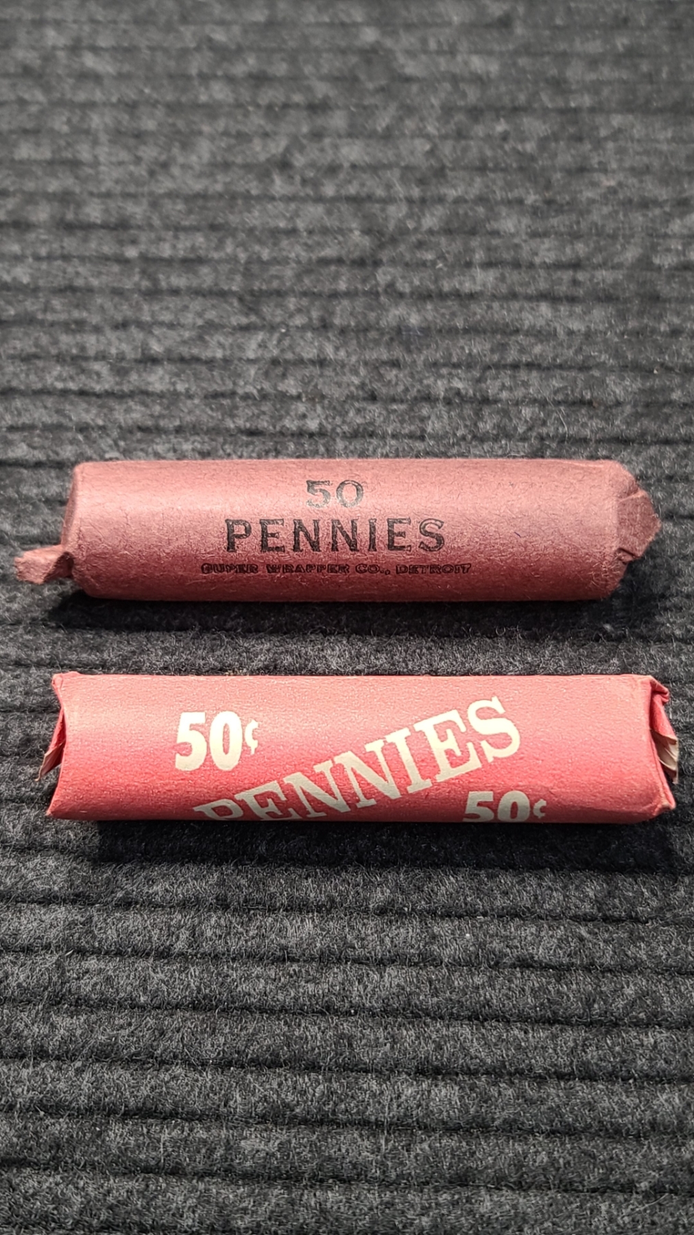 (2) 50 Cent Rolls Of Unsearched & Uncounted Wheat Pennies Face Value: $1.00