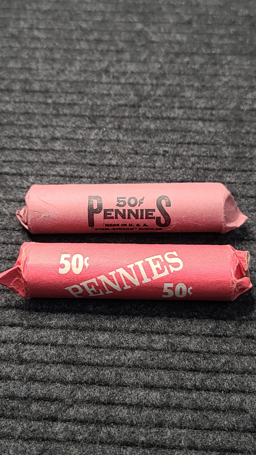 (2) 50 Cent Rolls Of Unsearched & Uncounted Wheat Pennies Face Value: $1.00