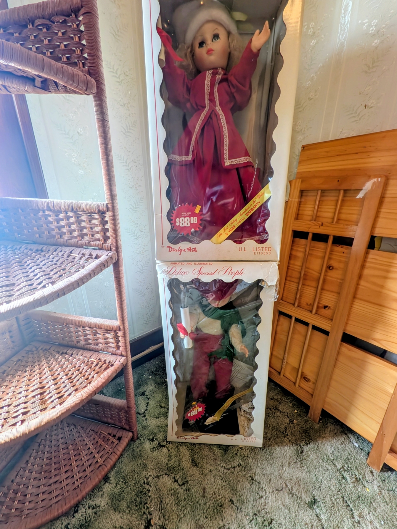 2 Animated & Lighted Boxed Holiday Dolls In Like New Condition