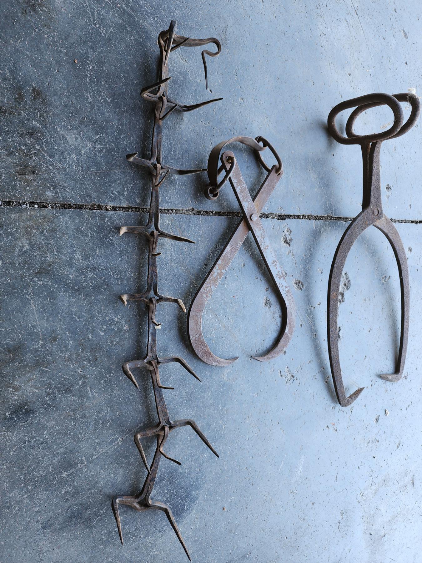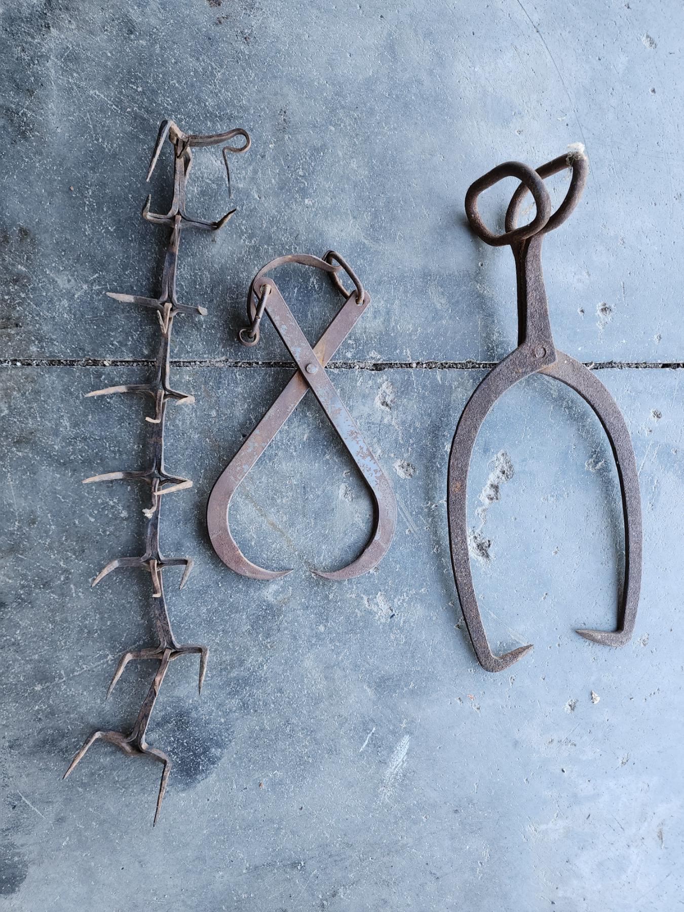 2 Antique Ice Tongs and Antique Dog Collar