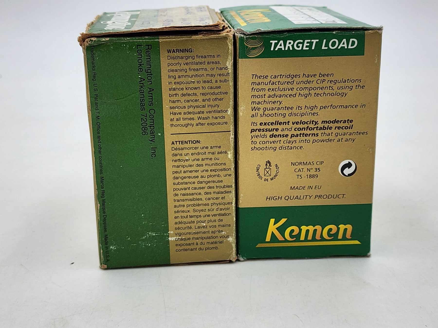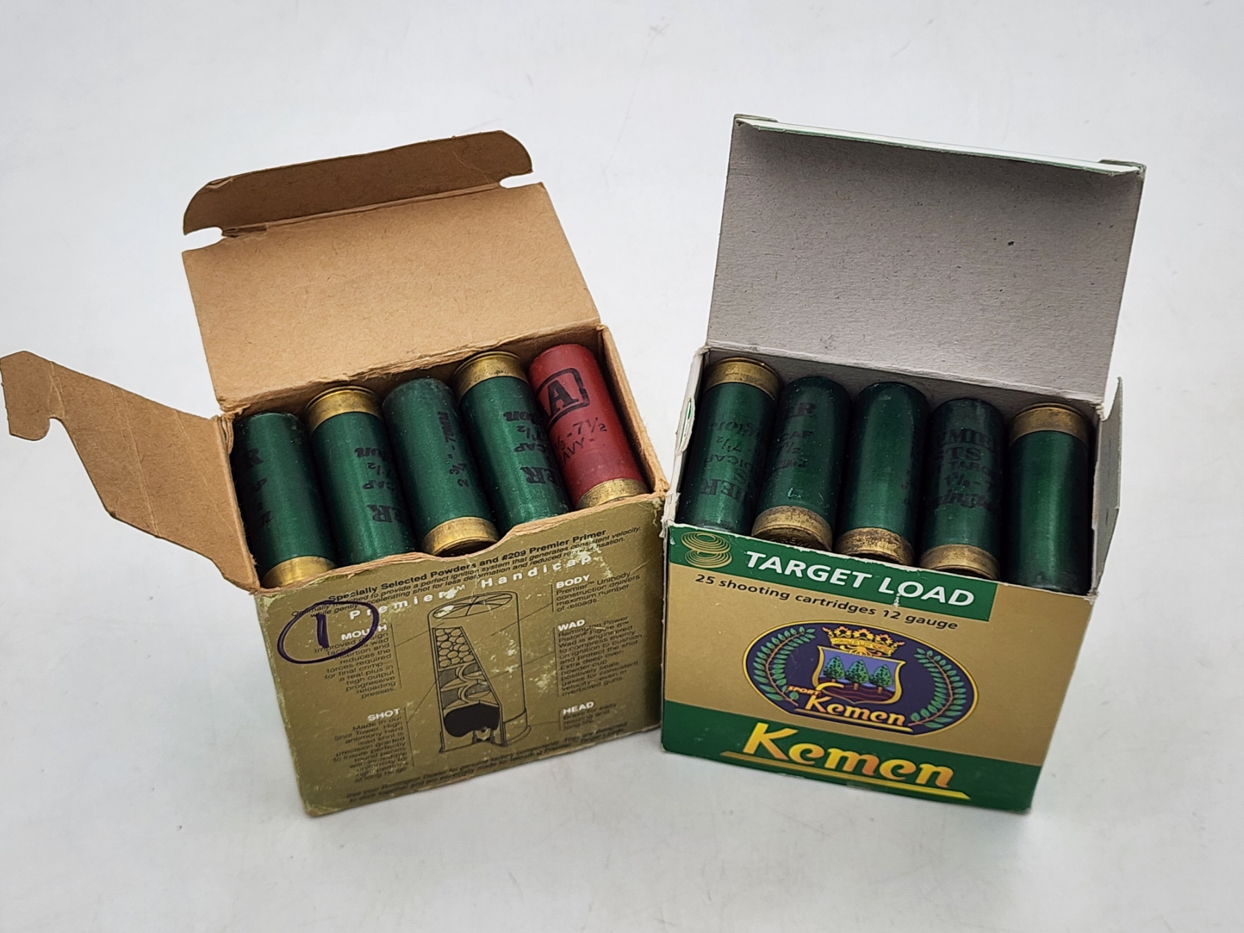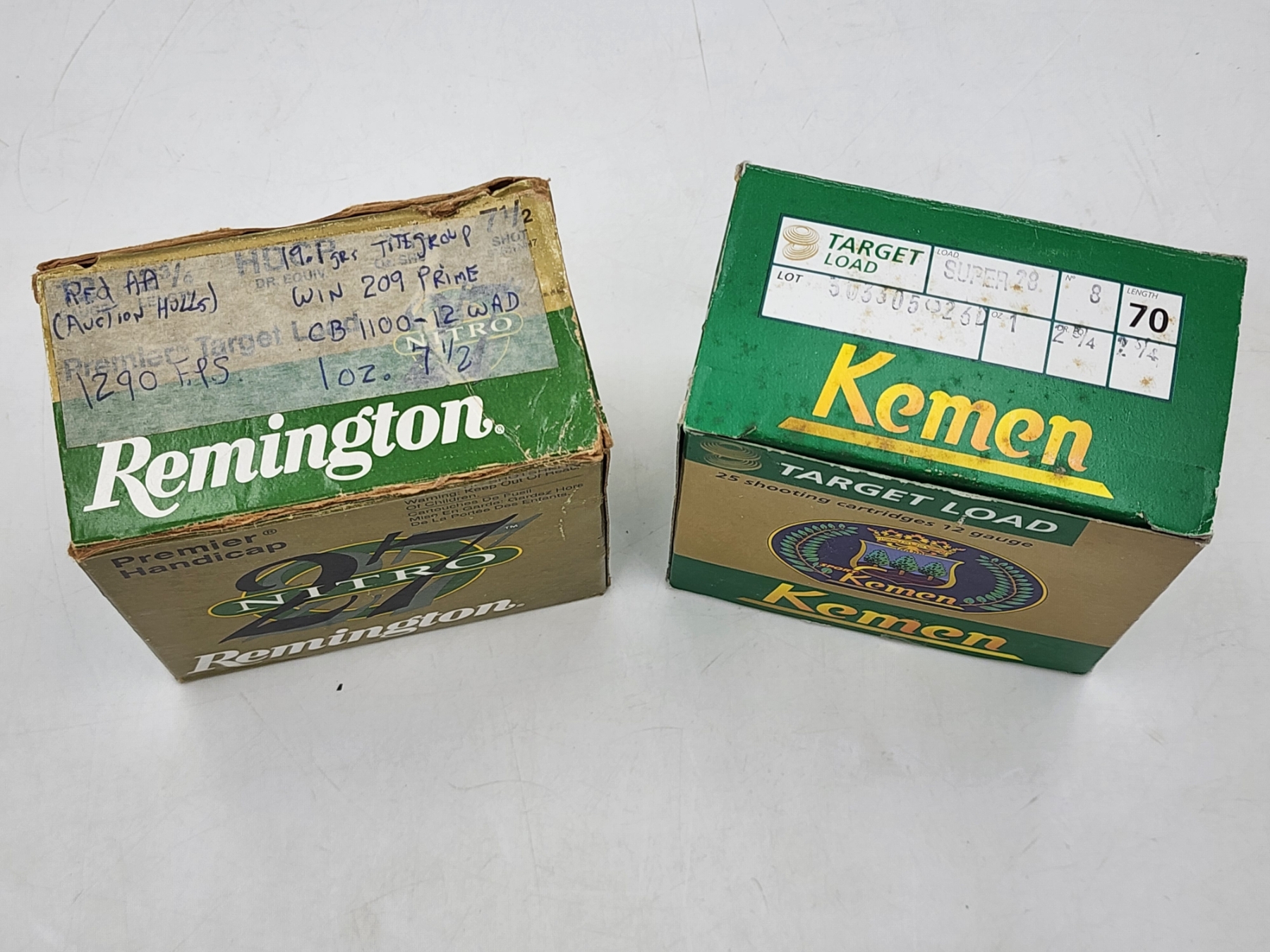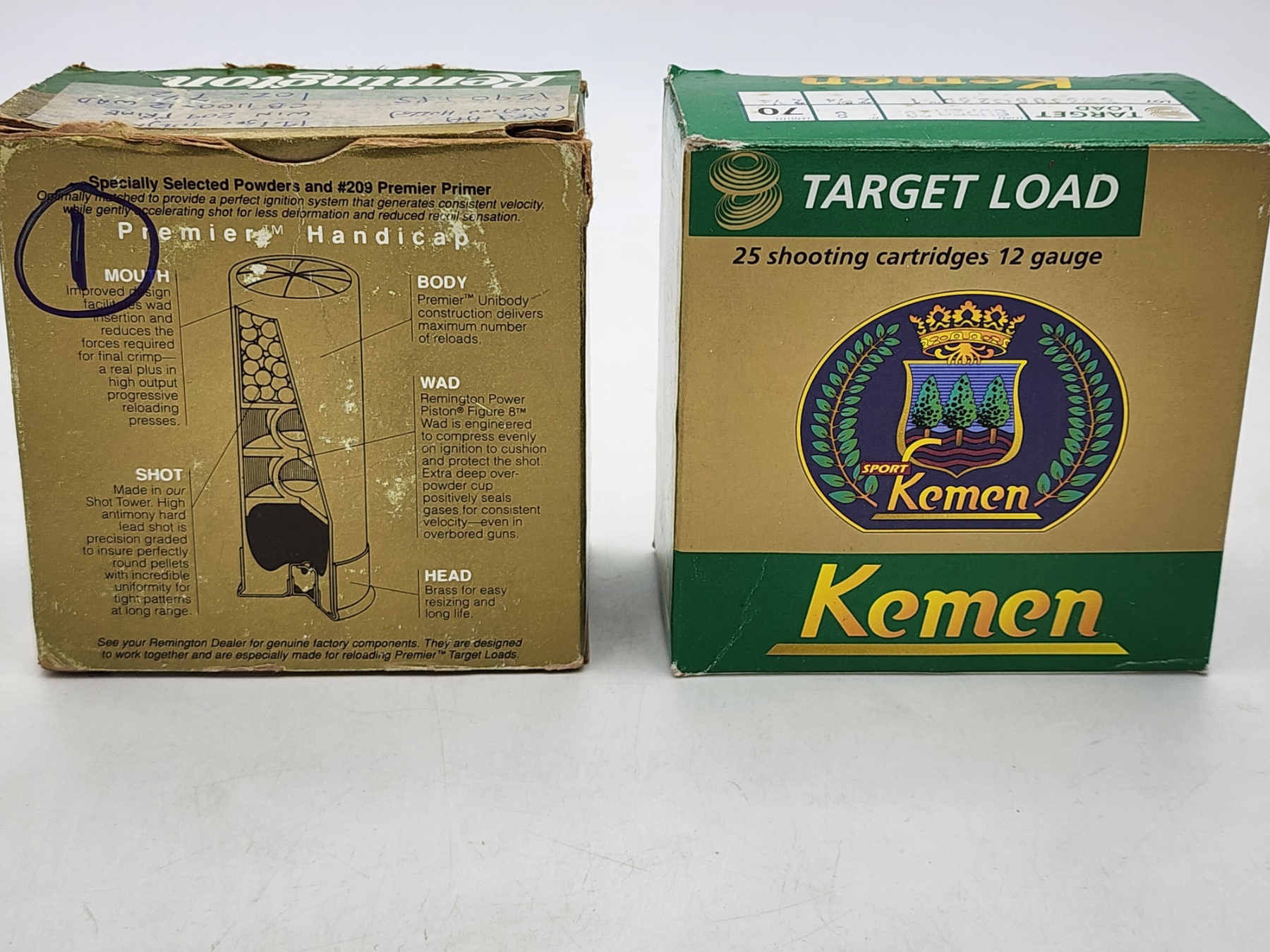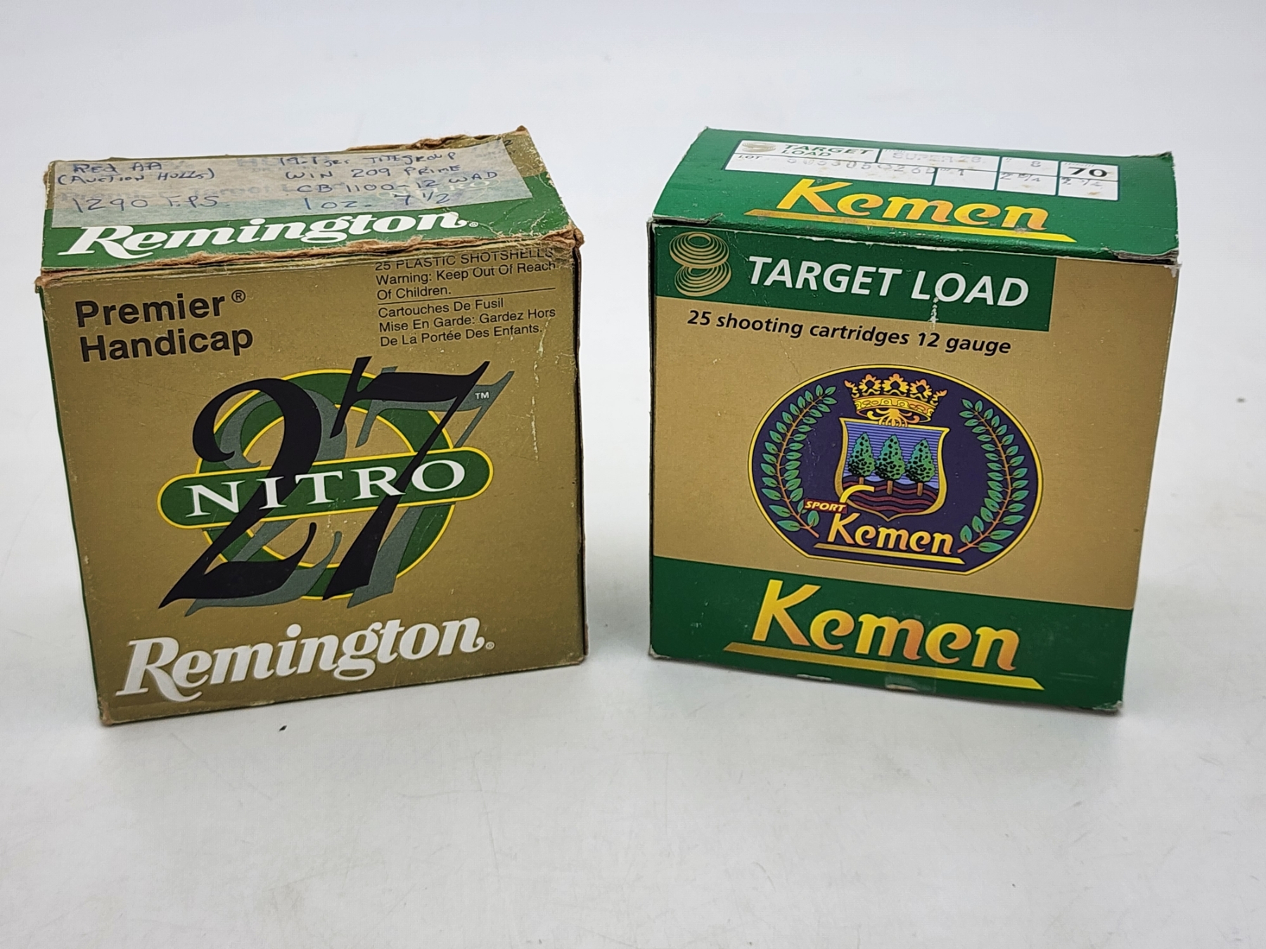 2 Boxes of 12 Gauge Shotgun Target Loads: Remington 27 Nitro Premier Handicap, Kemen