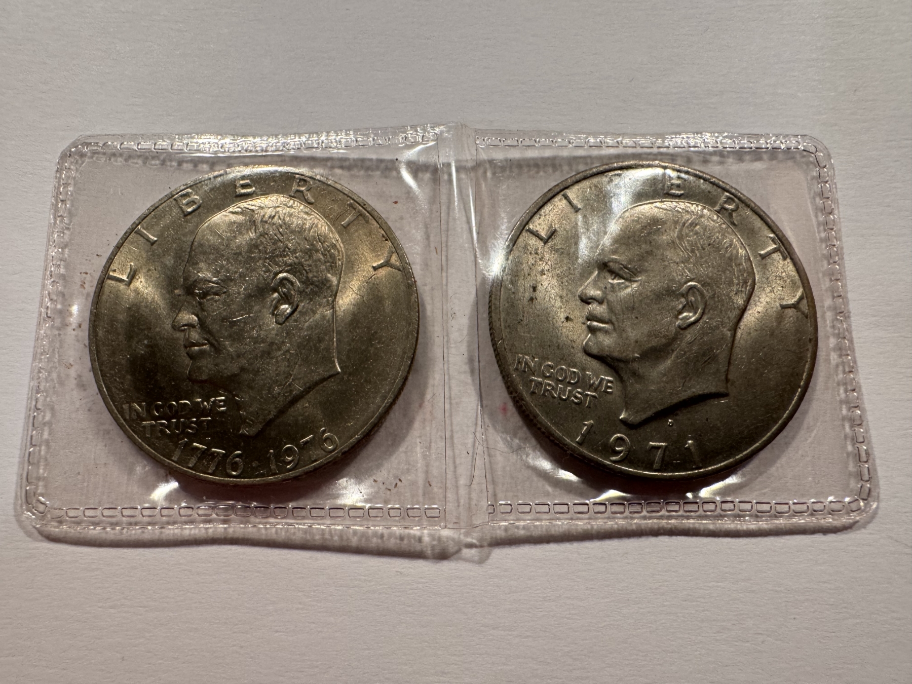2 - Dwight Eisenhower United States One Dollar Coins - Mint Condition