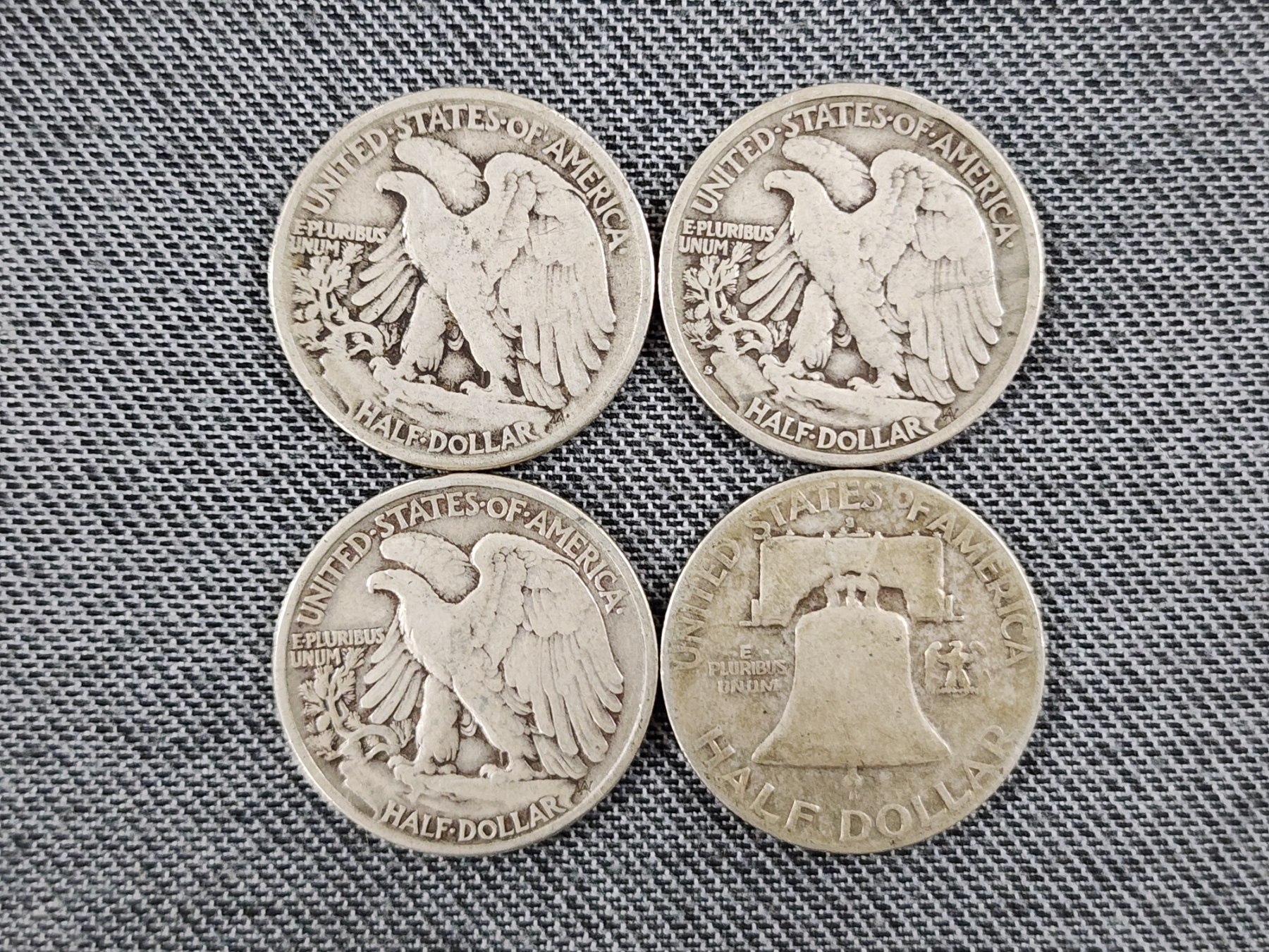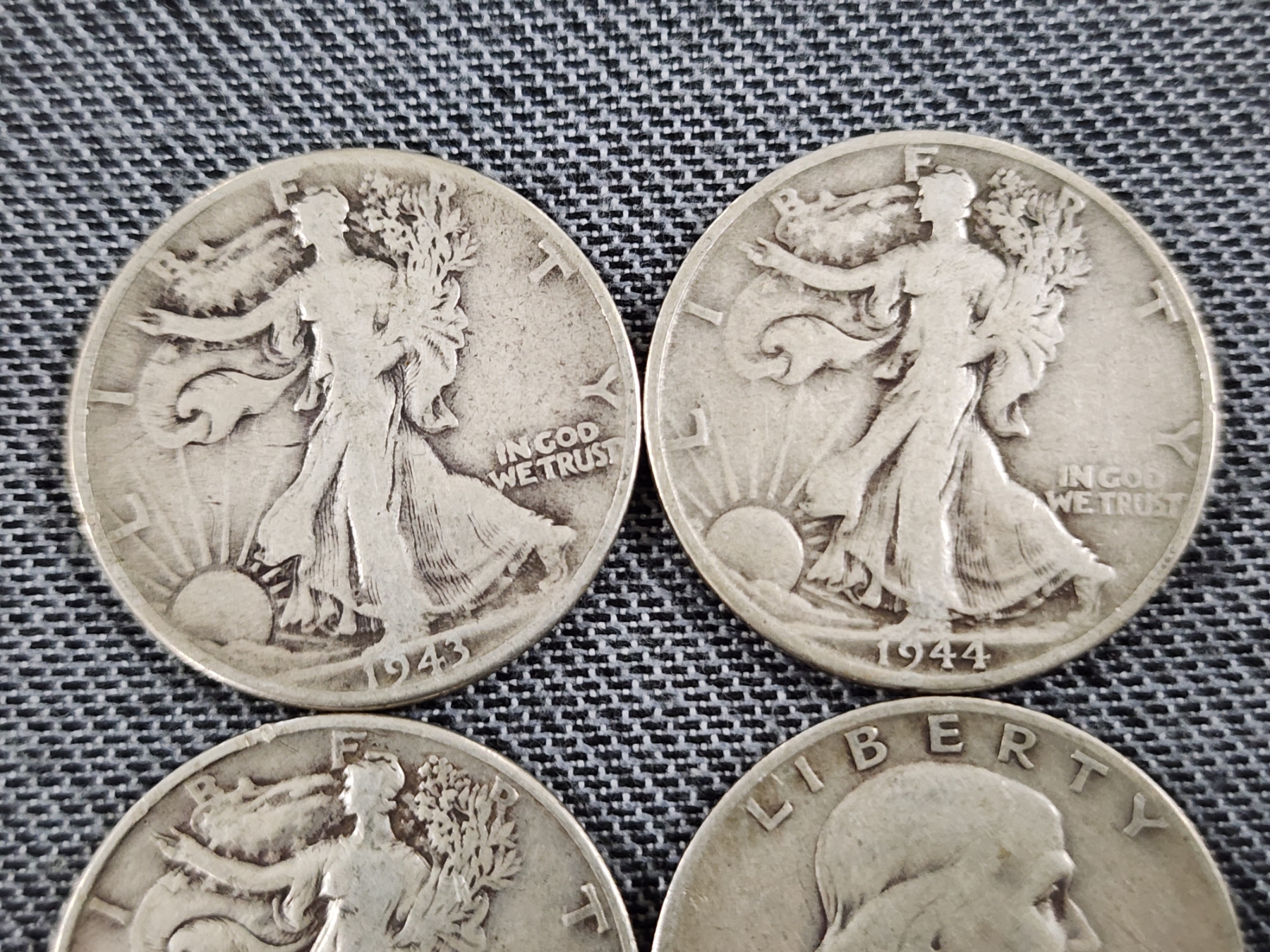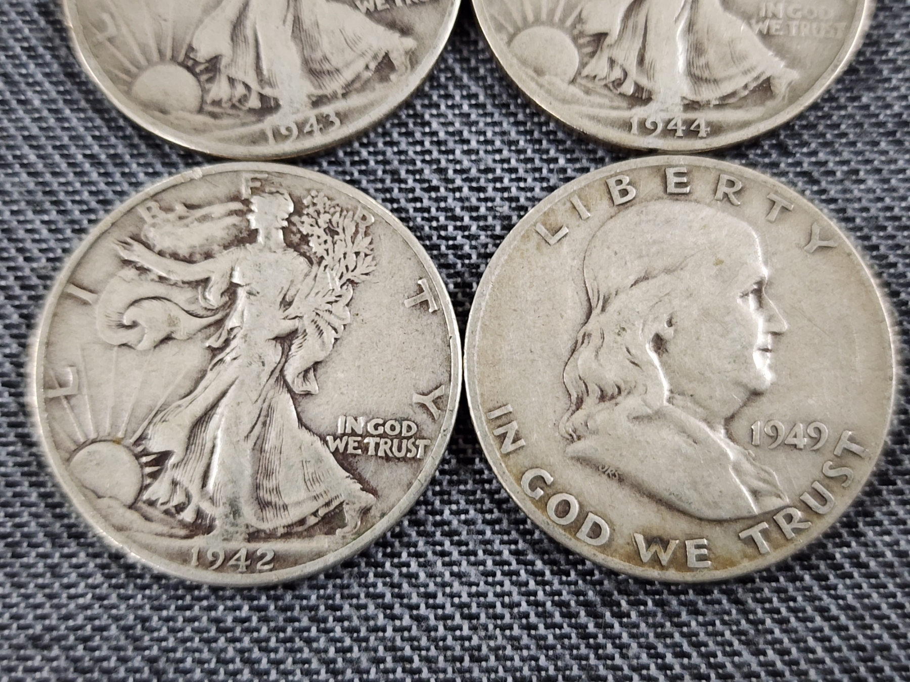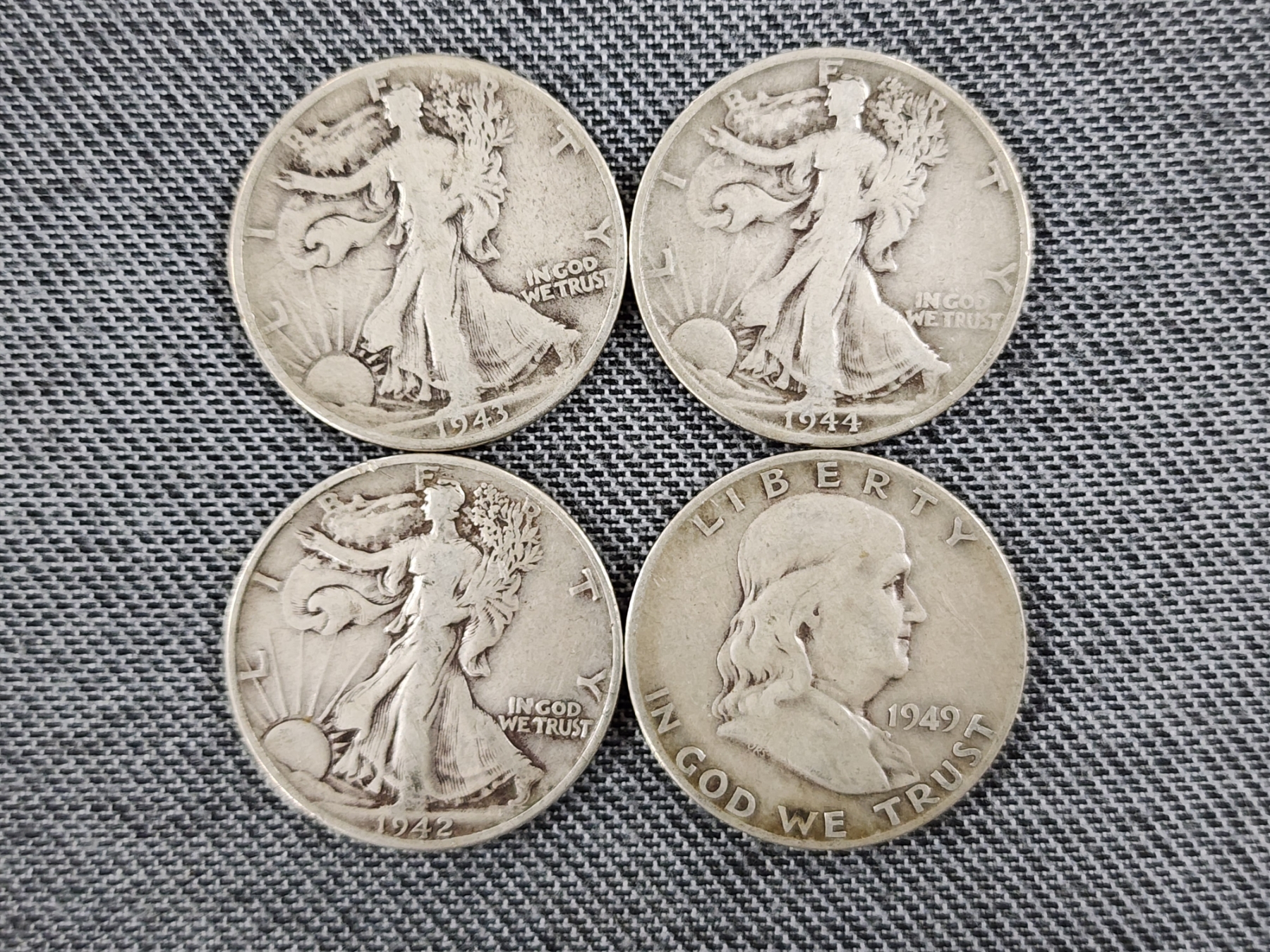 $2 Face Value in Assorted 90% Silver Half Dollars Ft. Walking Liberties & Franklin