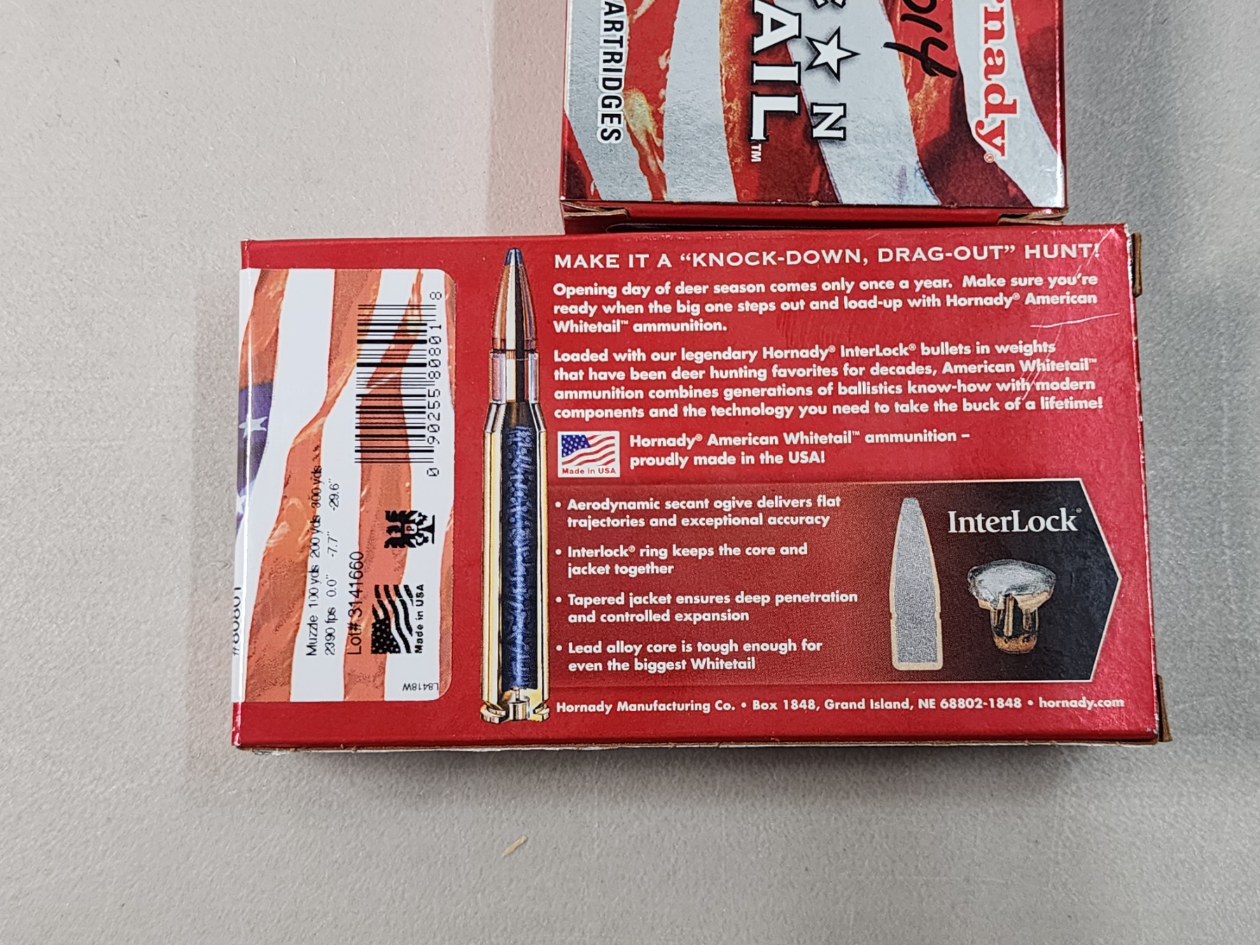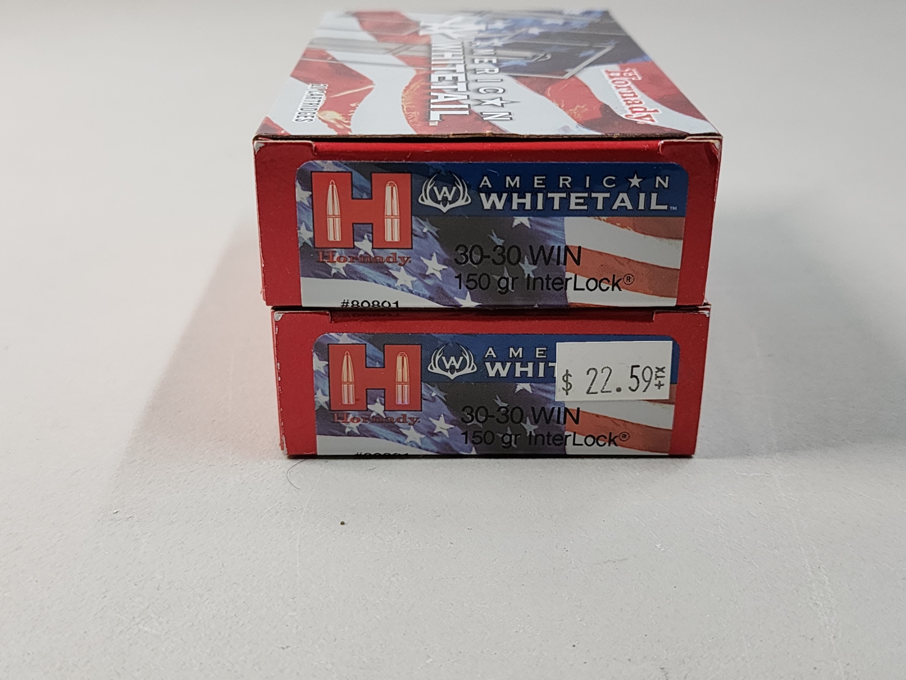 2 Full Boxes of Hornady American Whitetail 30-30 Winchester Rifle Ammo - 40 Rounds Total
