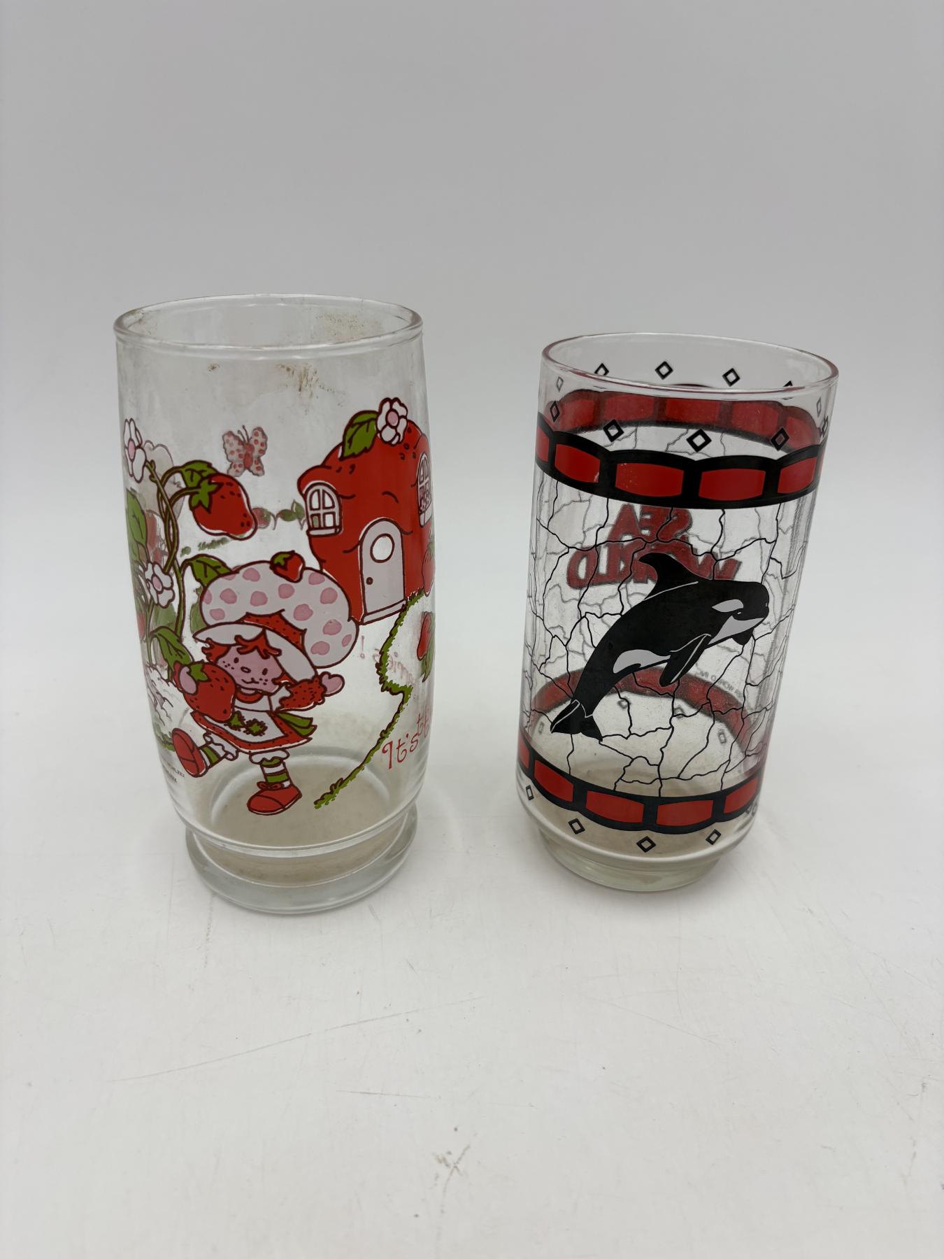 2 Glasses - Sea World & Strawberry Shortcake American Greetings Corp - Sea World Killer Whale