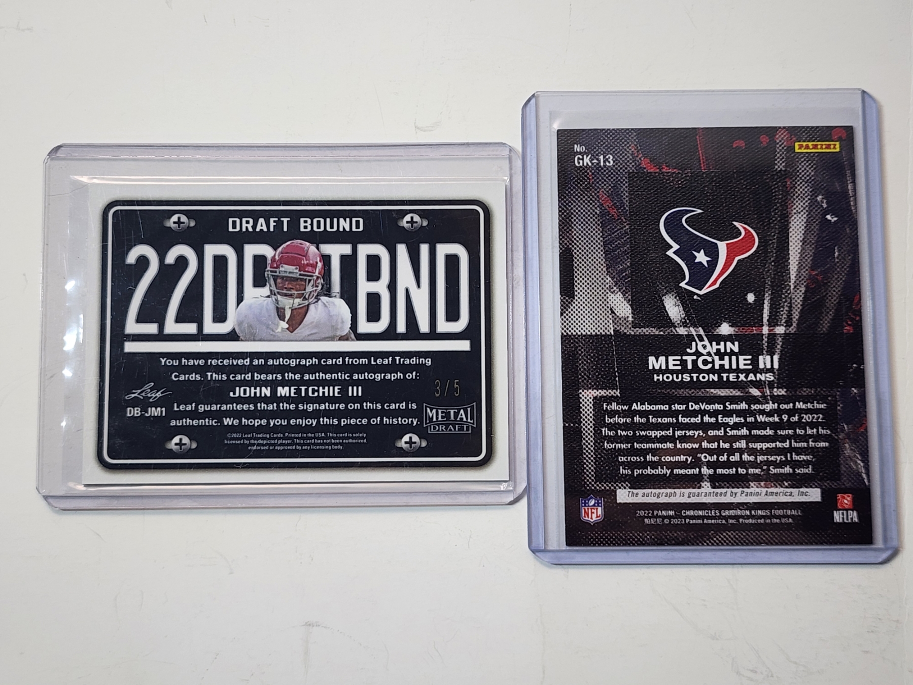 2 John Metchie III Football Trading Cards: 2022 Leaf Metal Draft Bound 3/5 & 2022 Panini GK-13