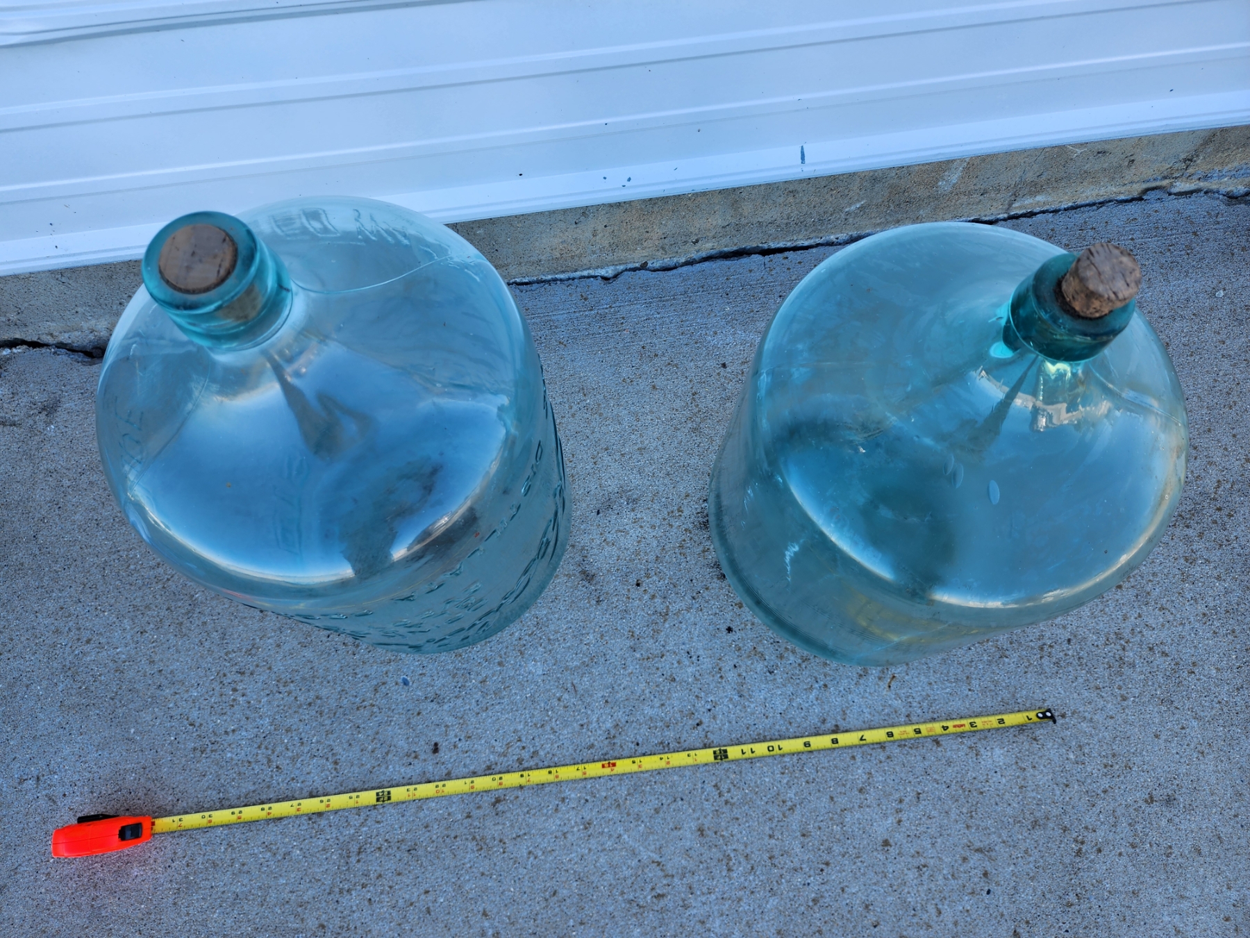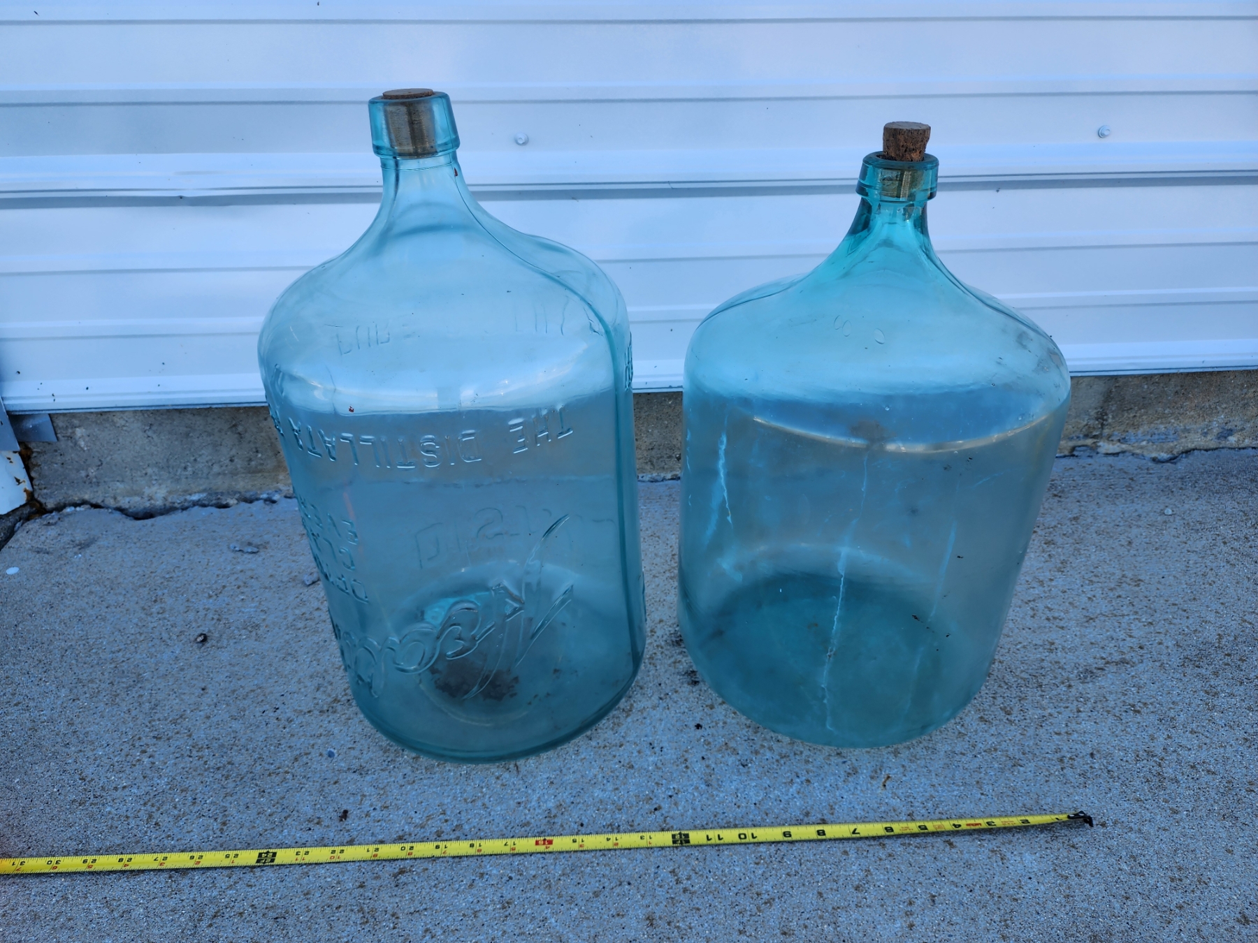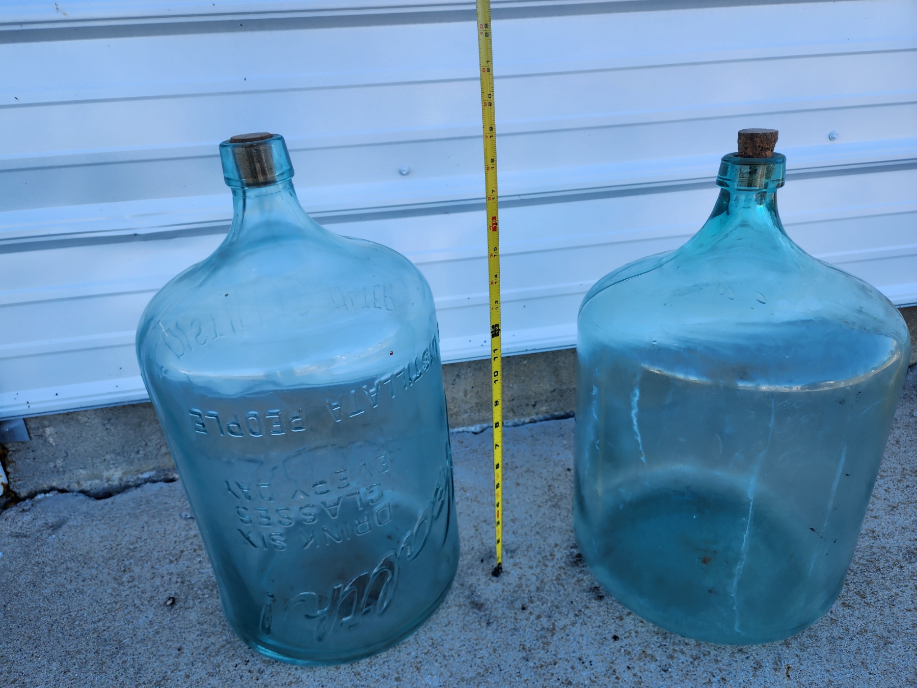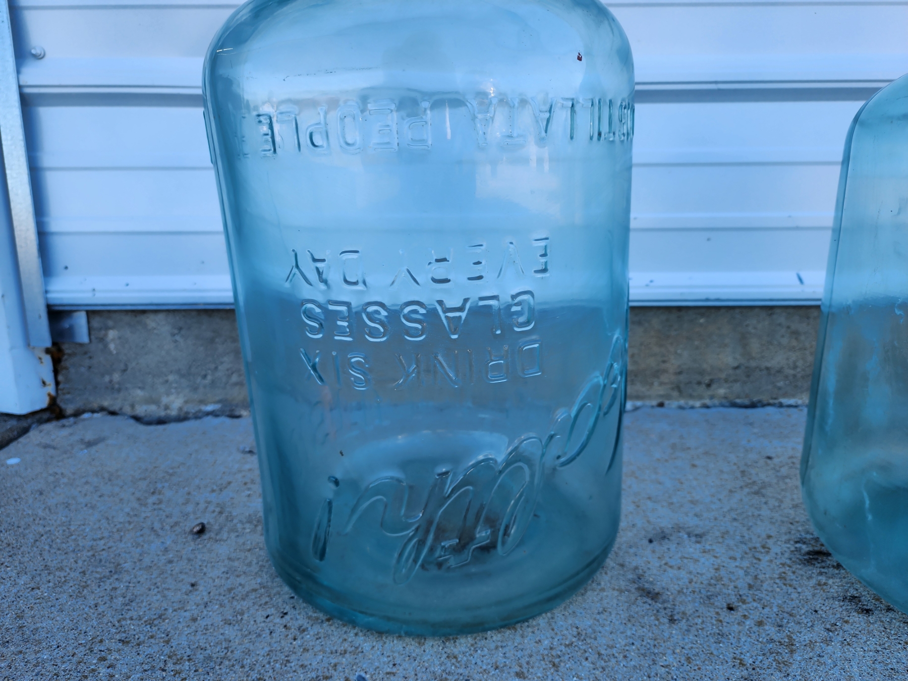 2 Large Vintage 5-Gallon Blue Glass Water Jugs