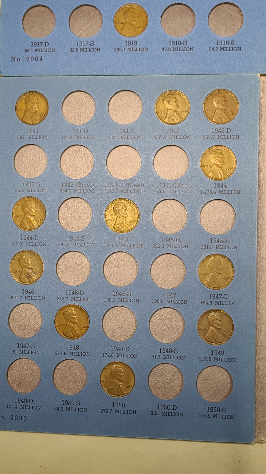 (2) Lincoln Cent Books 1909-1940 - This Book Is Missing 53 Pennies & 1941 #2- This Book Is Missing 33 Pennies Face Value: 93 Cents