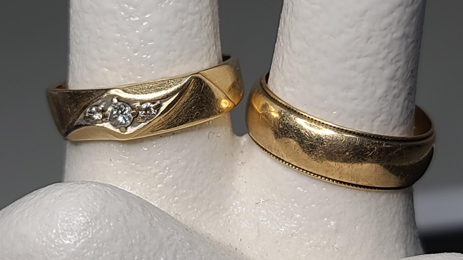 (2) Men's 14K Gold Rings (One With Diamonds) Sizes 10 & 10.5 - Total Weight: 10.1g