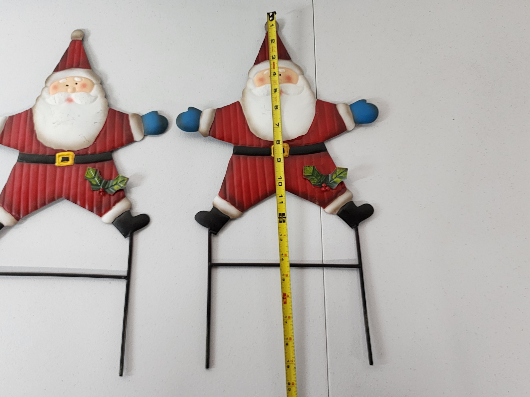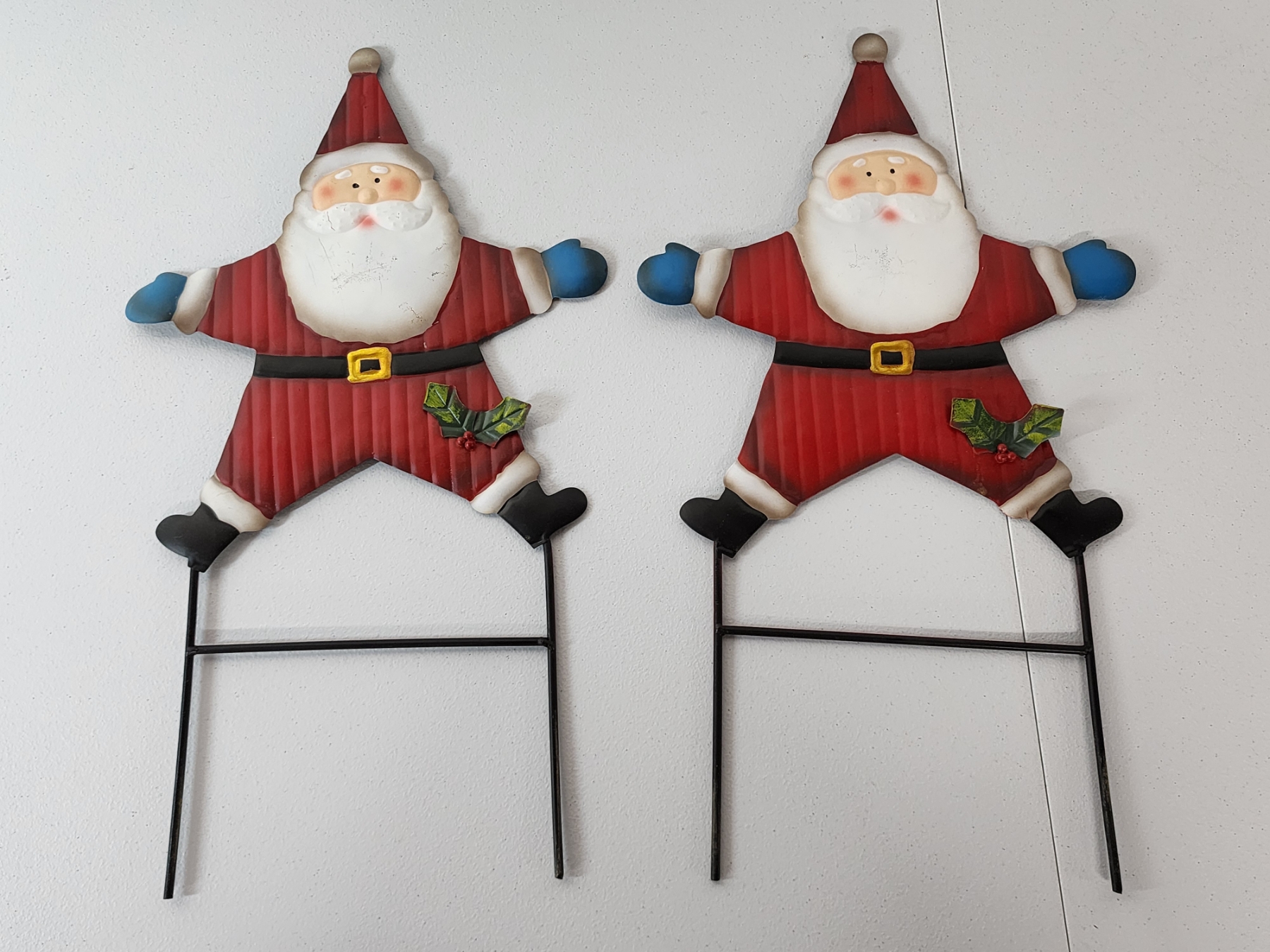 2 Outdoor Metal Christmas/Holiday Santa Stakes - Approx. 19in Tall