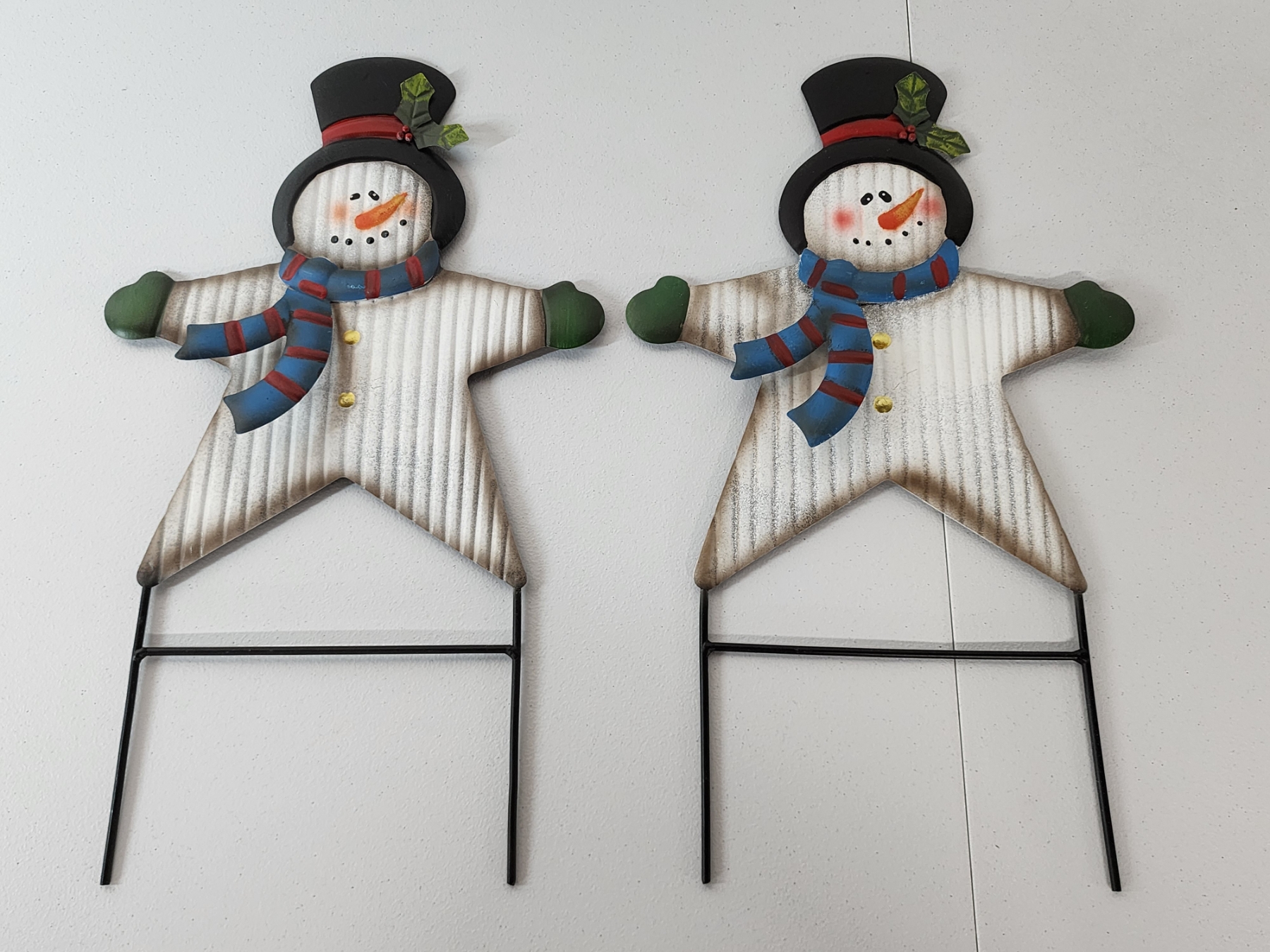 2 Outdoor Metal Christmas/Holiday Snowmen Stakes - Approx. 19in Tall