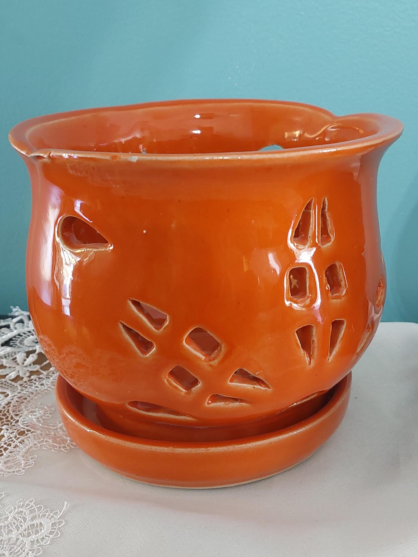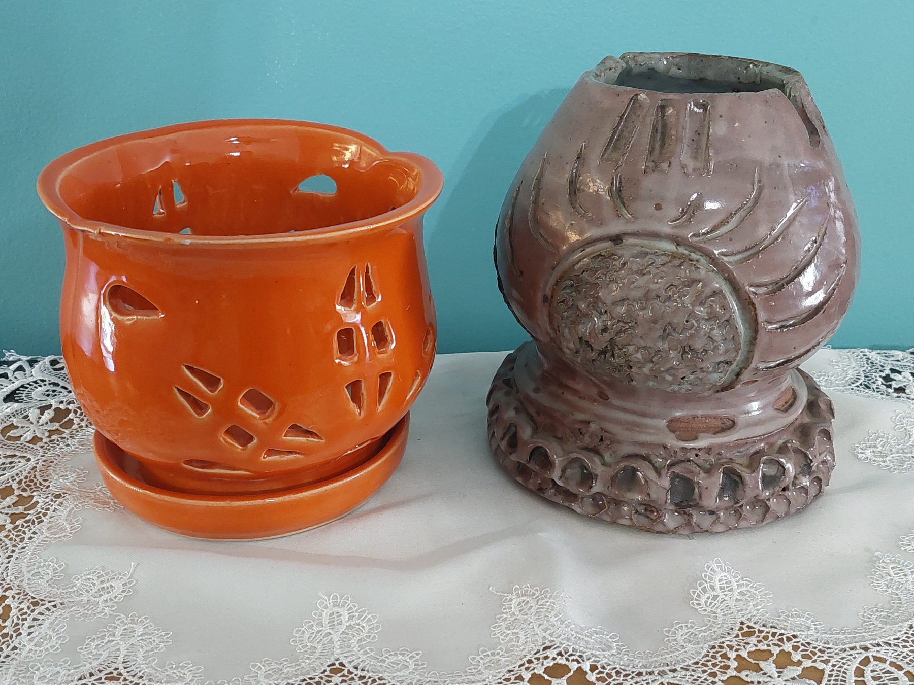 2 Pc Ceramic Glazed Planter / Vase - 8' & 6" Exc Condition