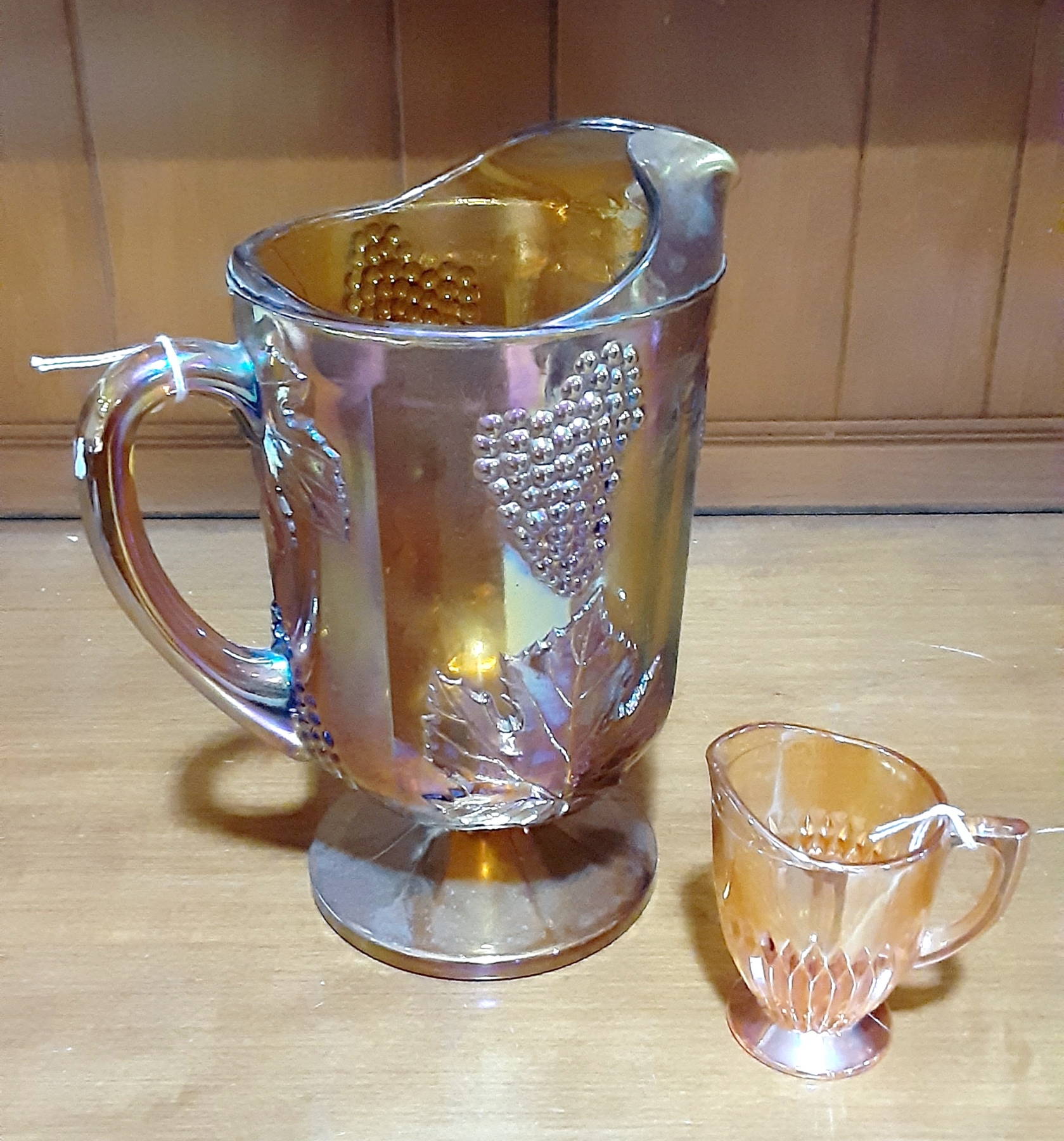 2 Pc IMPERIAL Carnival Glass - Marigold Pitchers - 11" & 4" See Pics