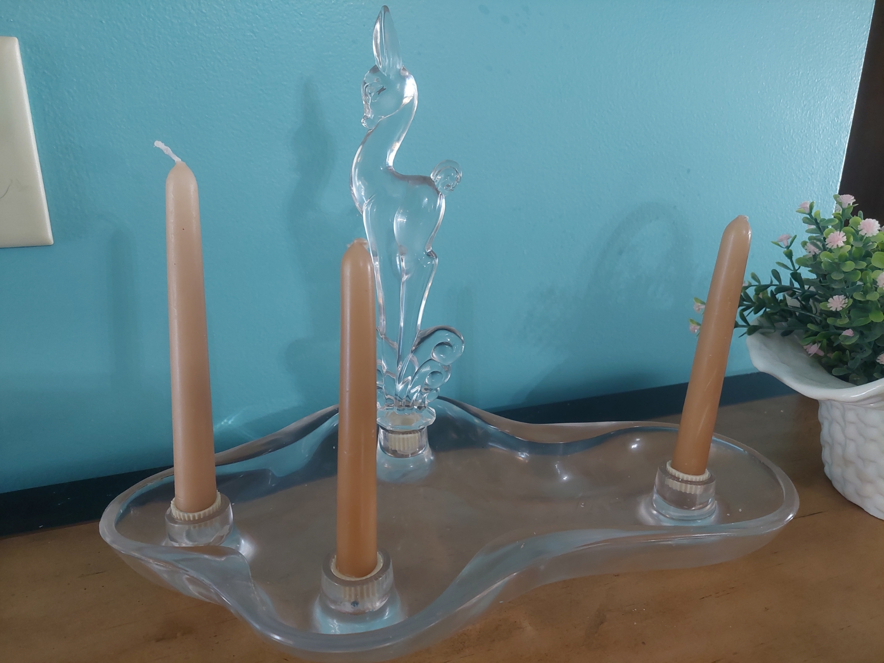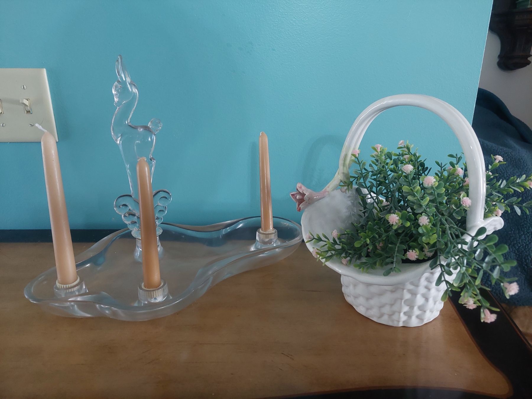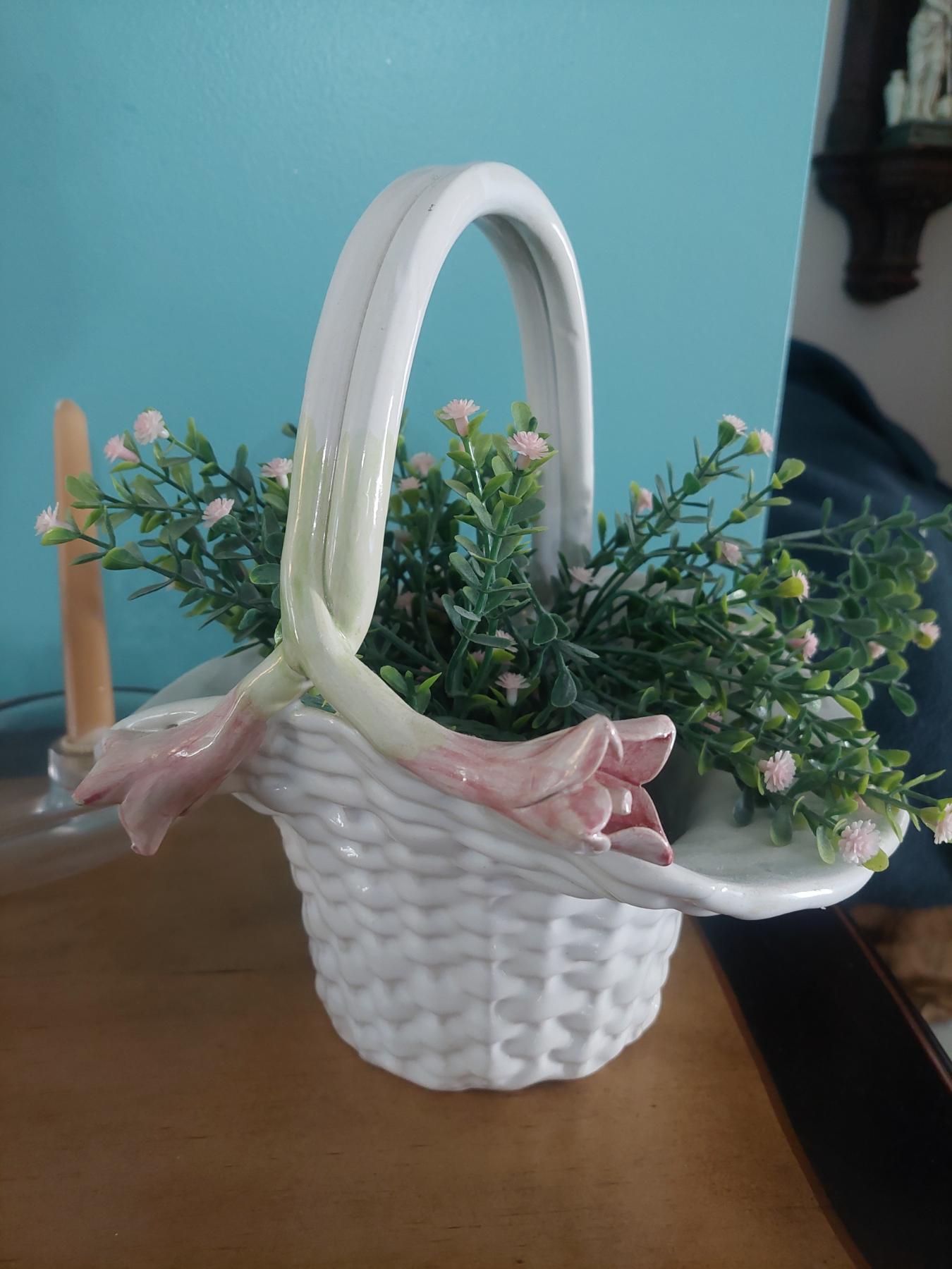 2 Pc Lot - Triple Candle Holder & Floral Basket As shown