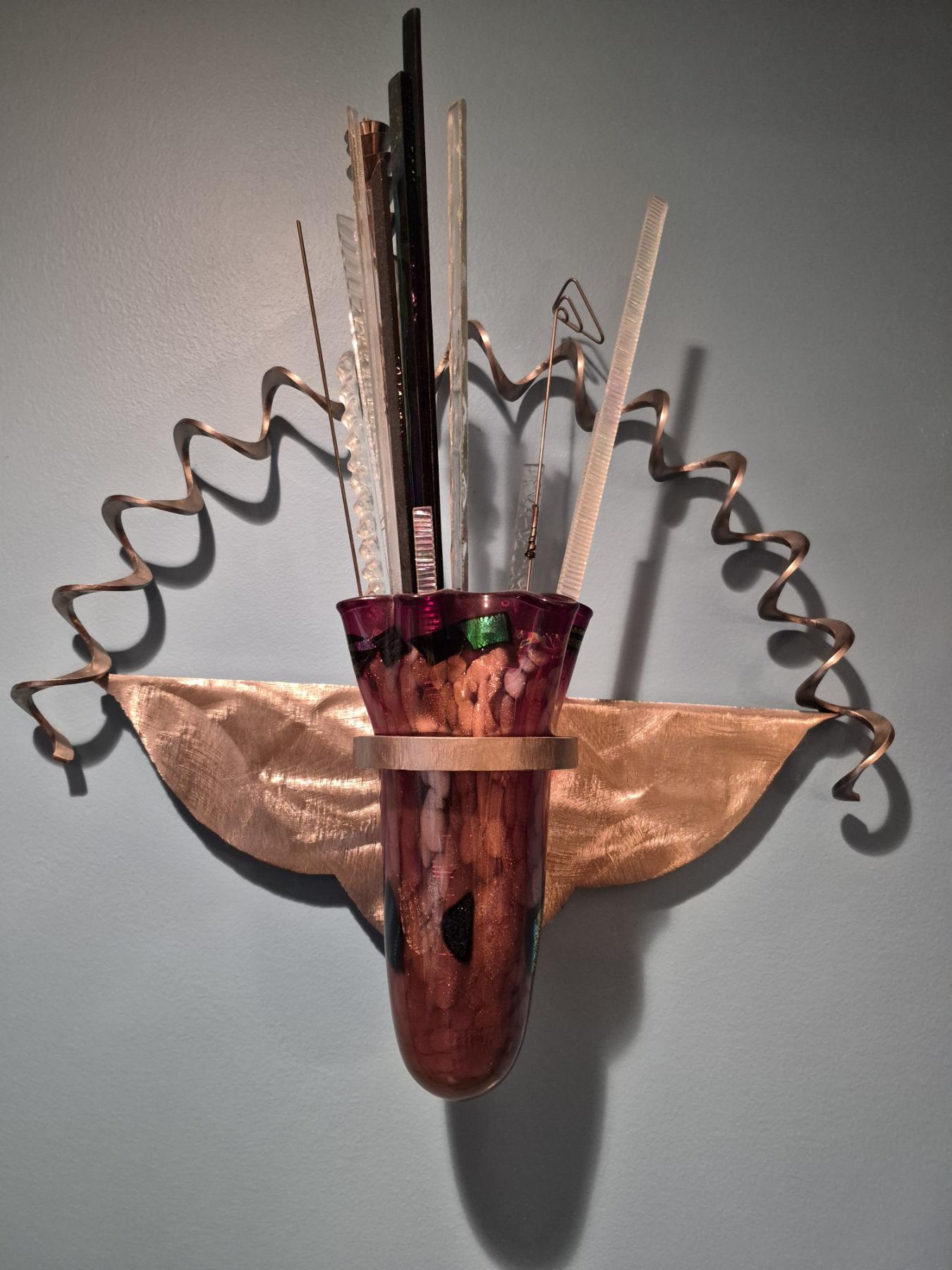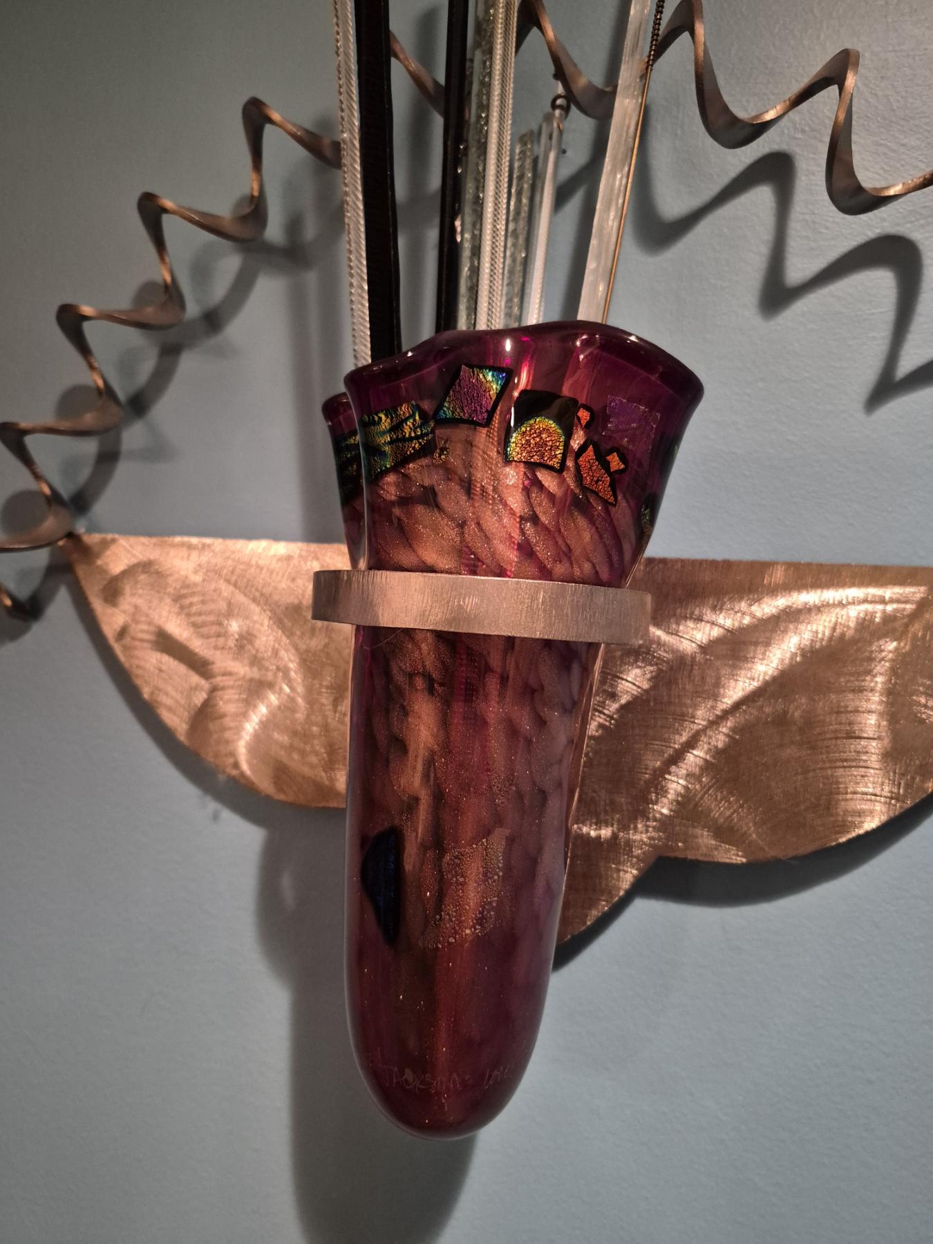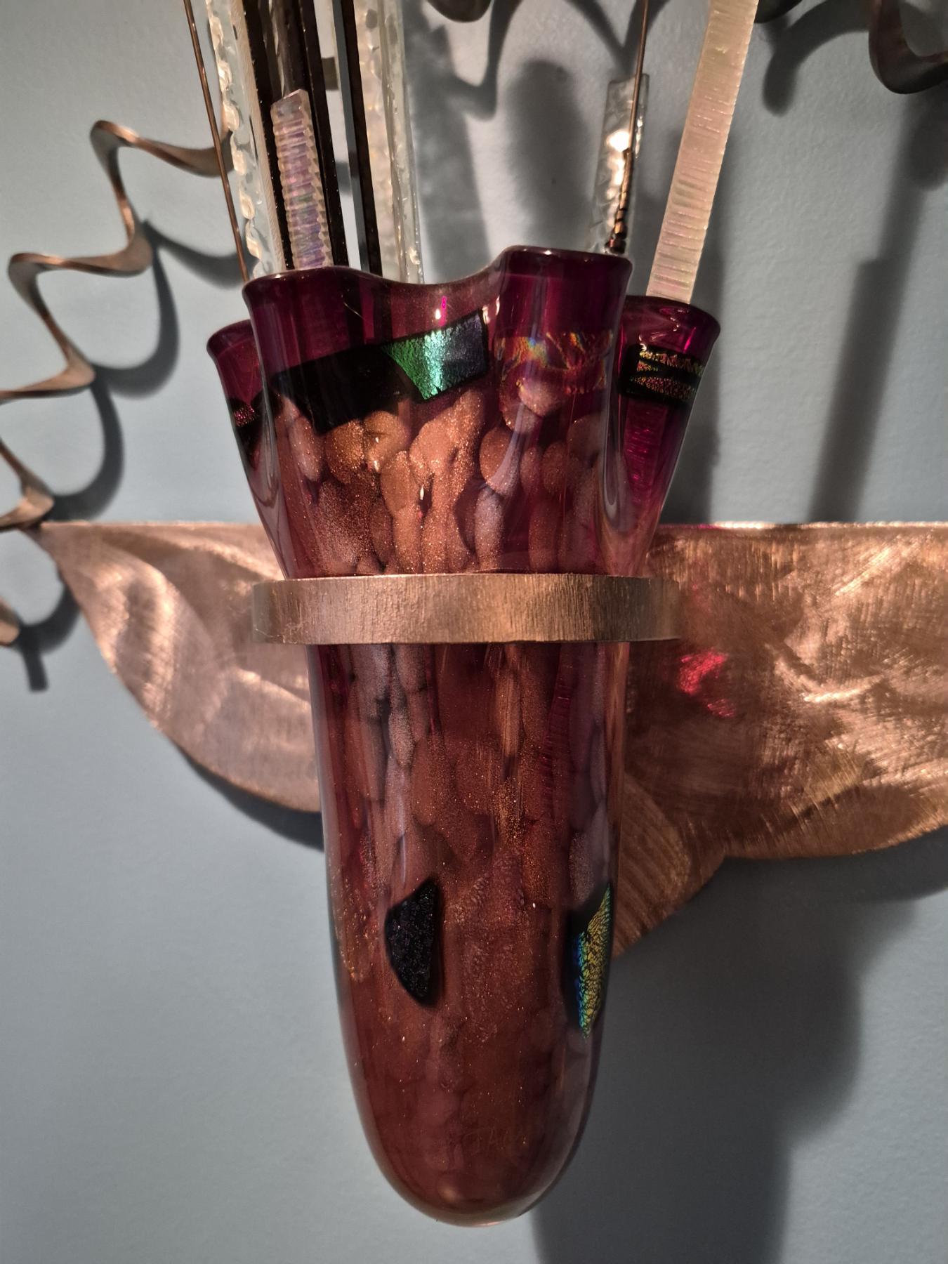 2 Pcs Highly Collectible Art Glass Wall Sconces by Loretta Eby & Jeff Jackson - Artist Info Sheet Provided