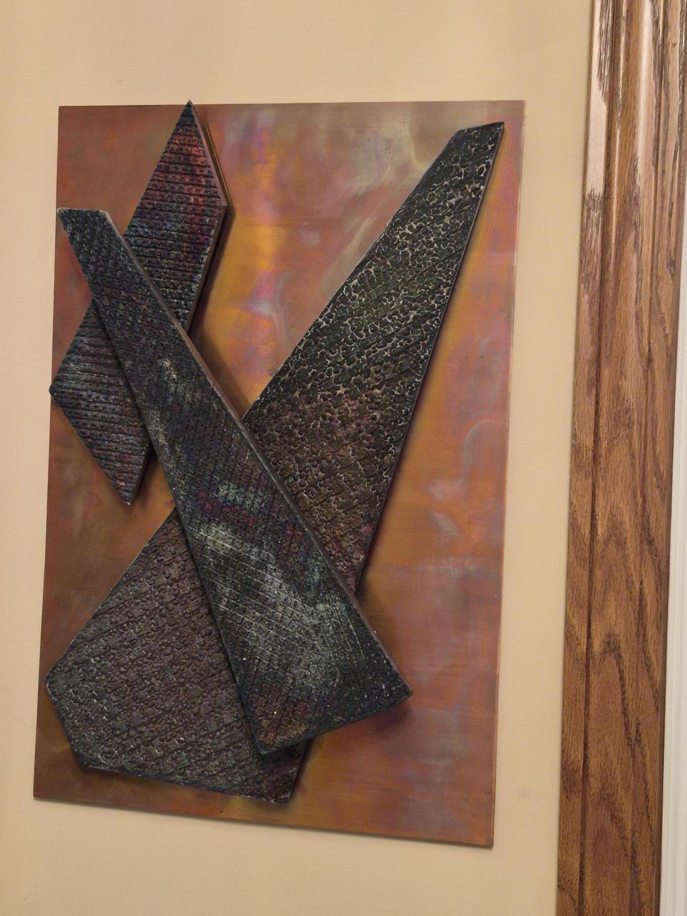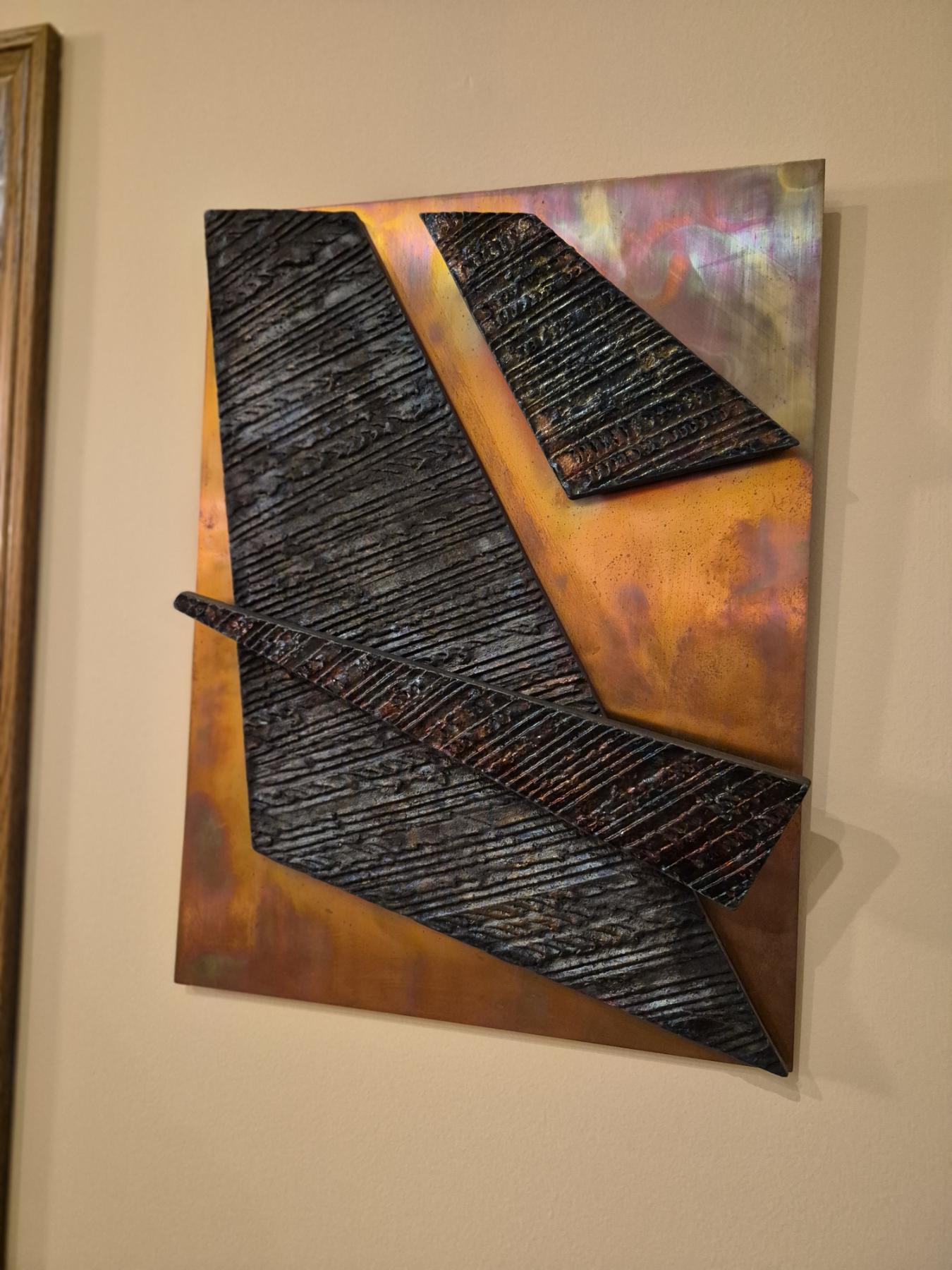 2 Pcs - Modern Metal Mixed Media Art Sculpture signed On Back 18 by 12 and 19.5 x 15 Mounted On Copper Sheet
