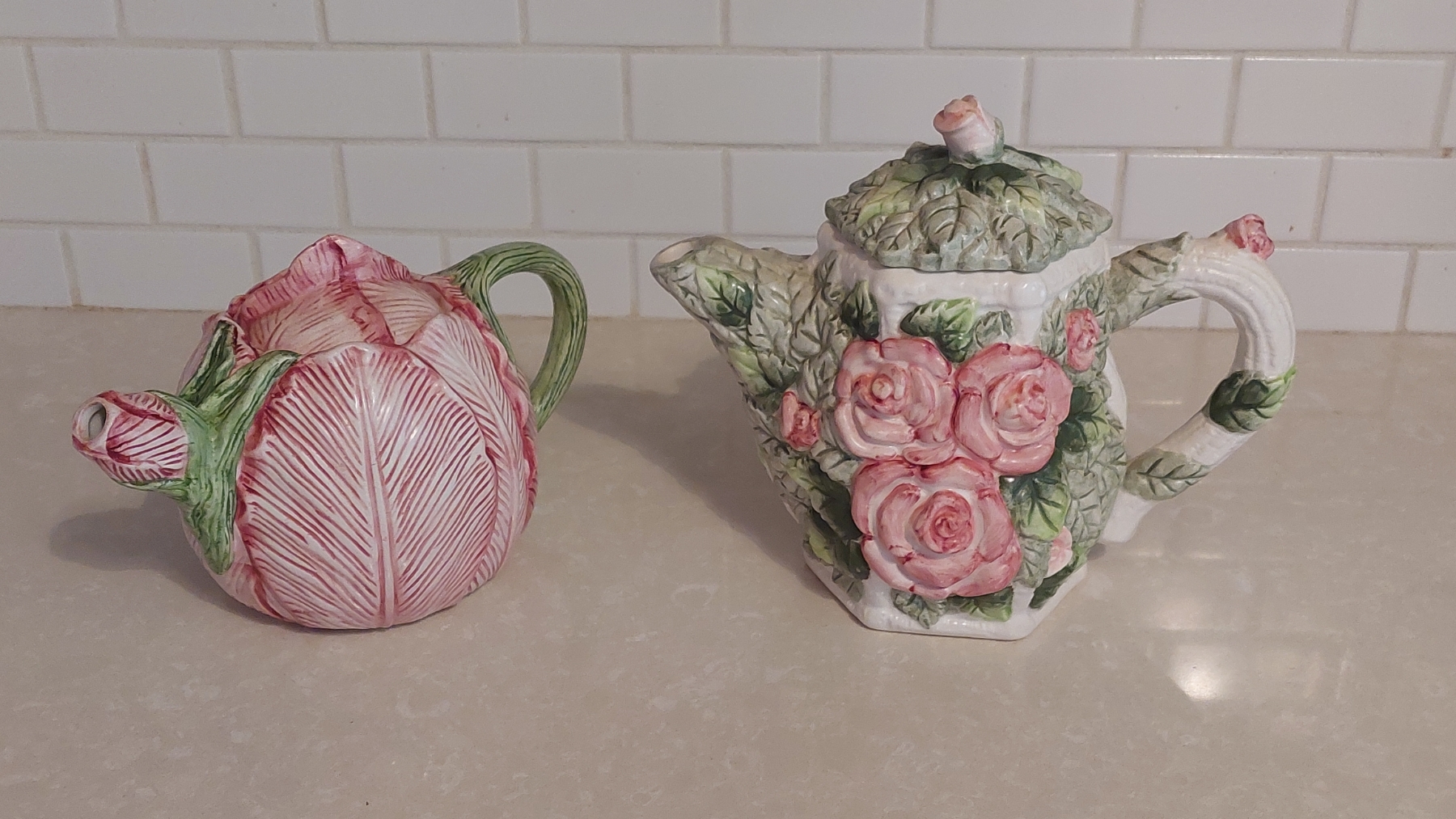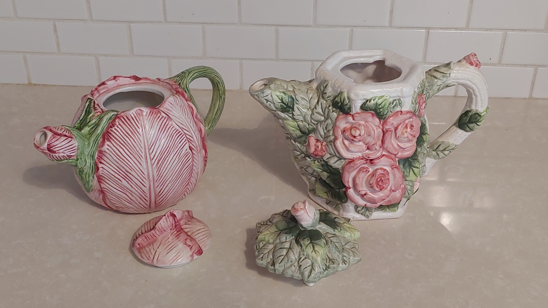 2 Pieces - Decorated Porcelain Covered Jar & Teapot - Exc Condition