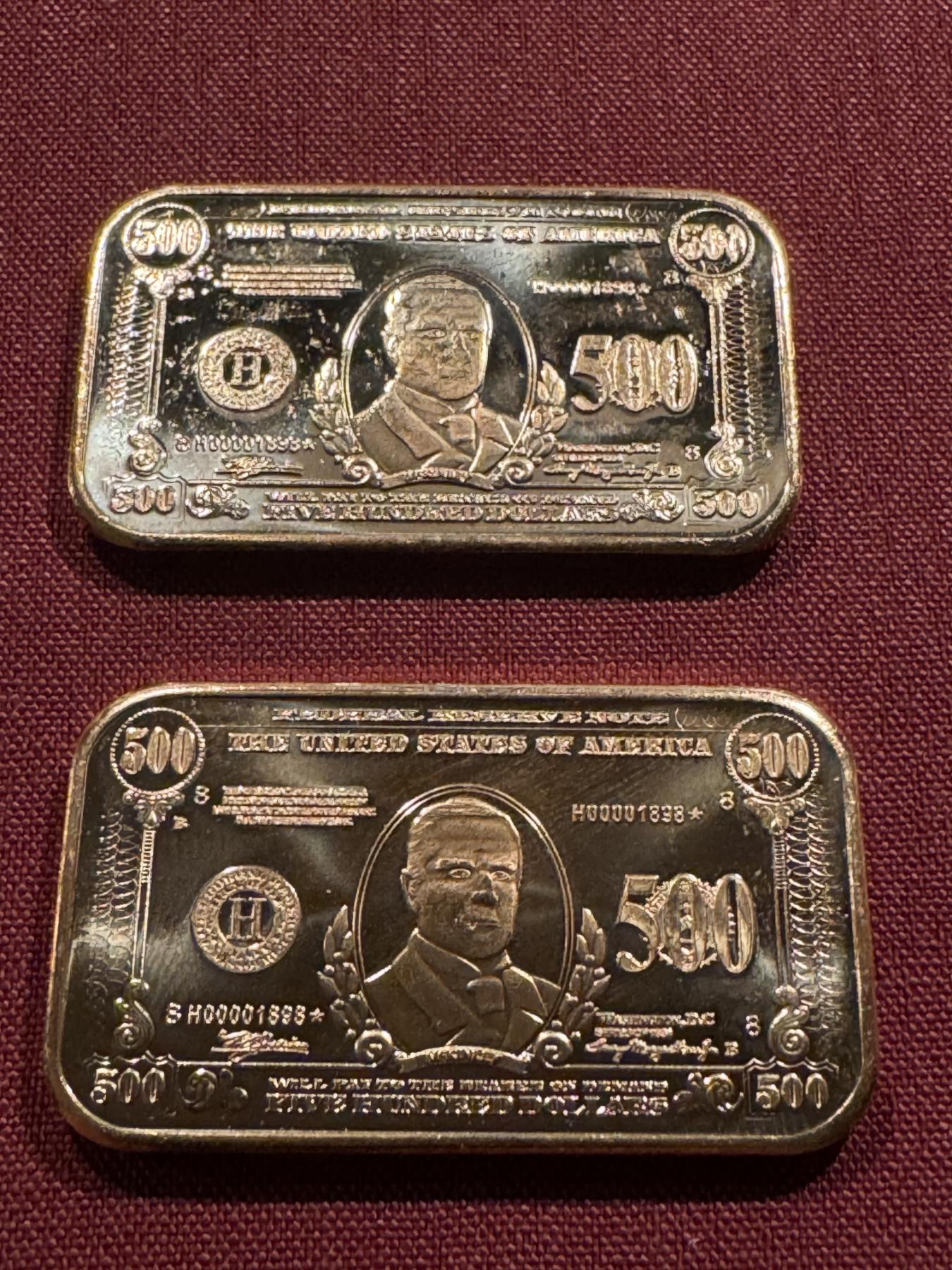 2 - President William McKinley $500.00 - .999 Fine Copper Troy Ounce Bars - Mint Condition