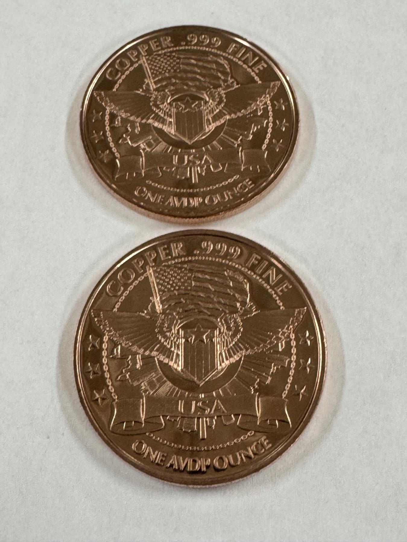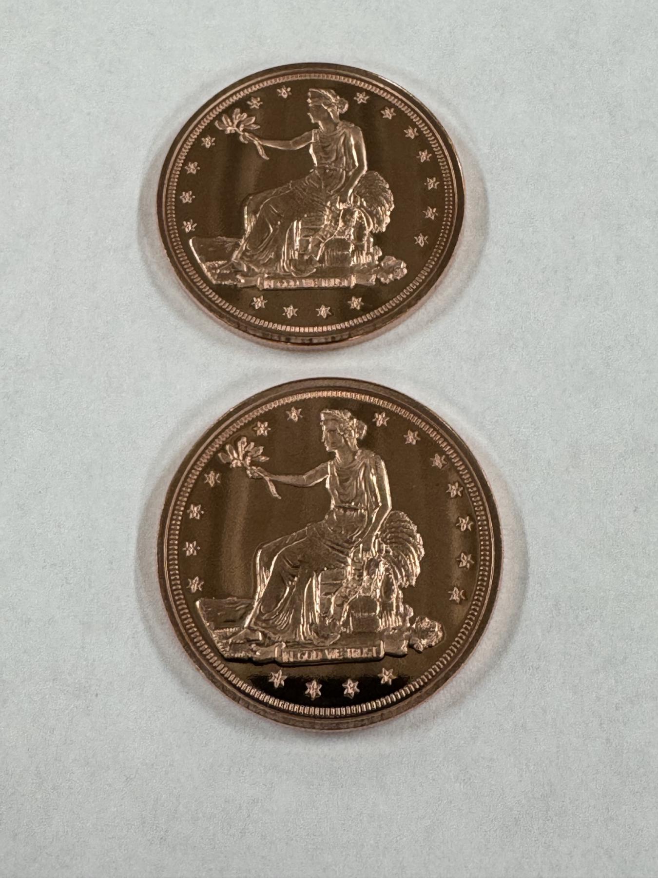 2 - Seated Liberty 1 oz .999 Fine Copper Round Coins - Brilliant Uncirculated - Limited Edition