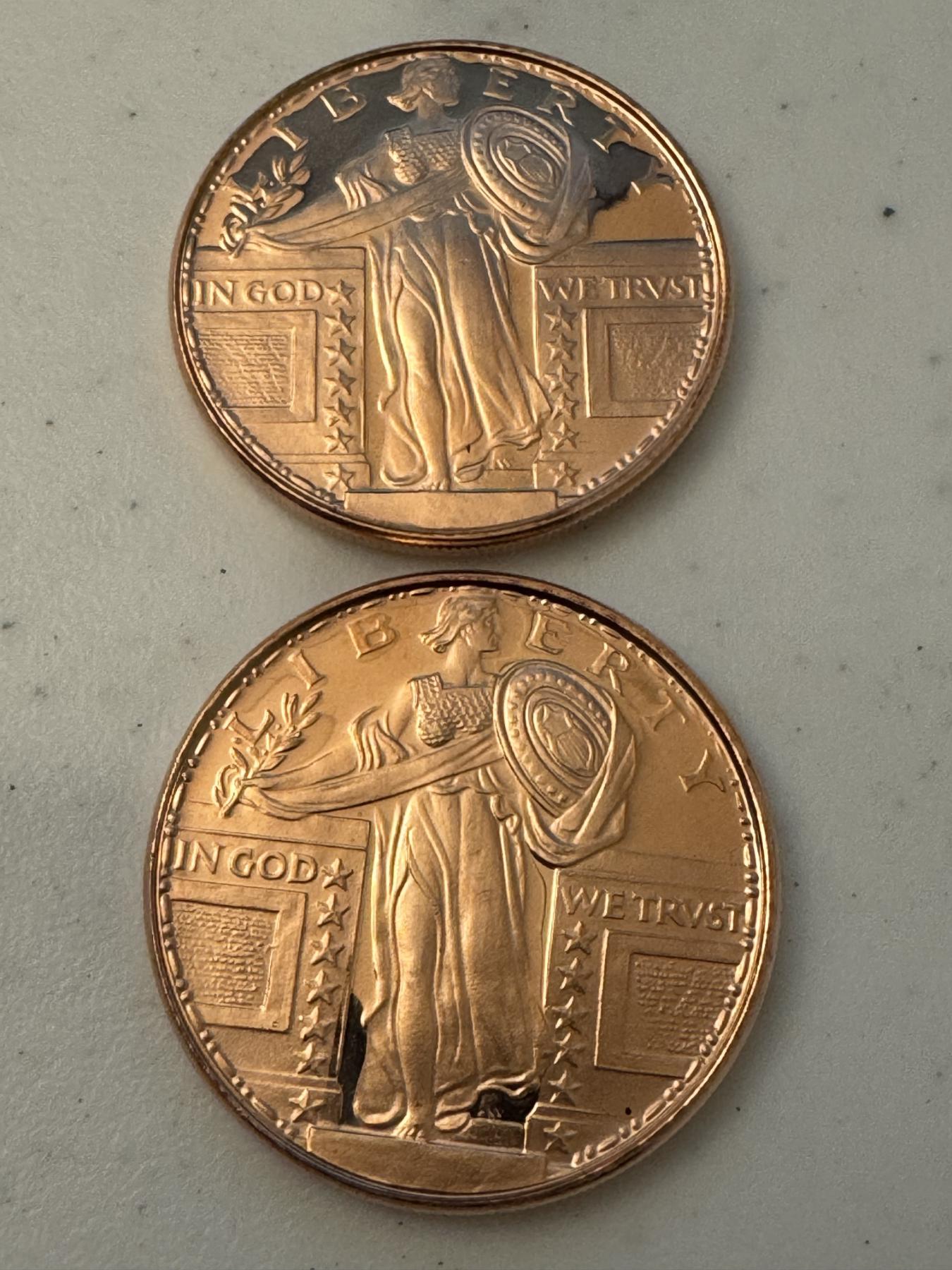 2 - Standing Liberty 1 oz .999 Fine Copper Round Coins - Brilliant Uncirculated - Limited Edition