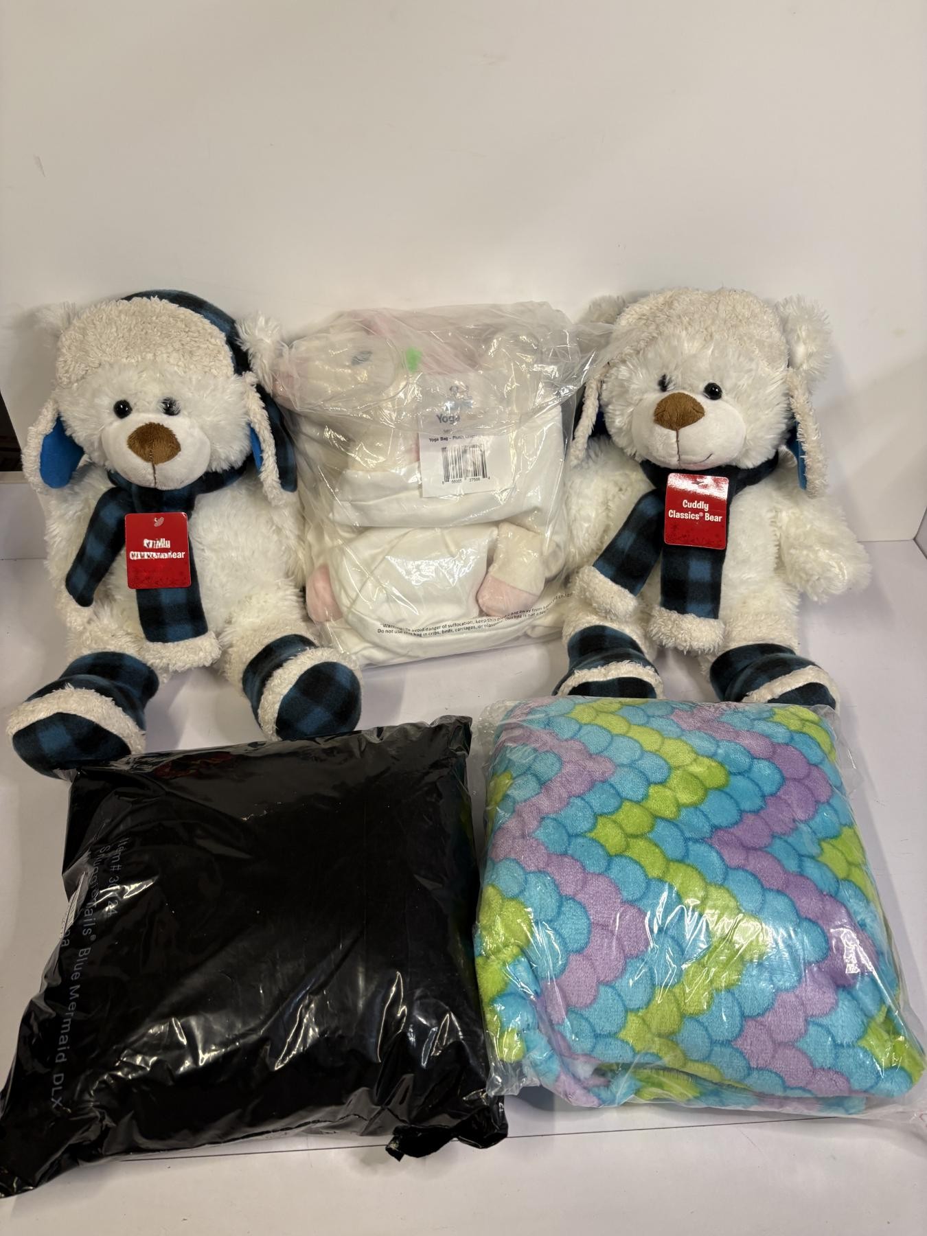 2 Stuffed Bears - 3 Blankets - 1 Unicorn Blanket - Mermaid Blankets