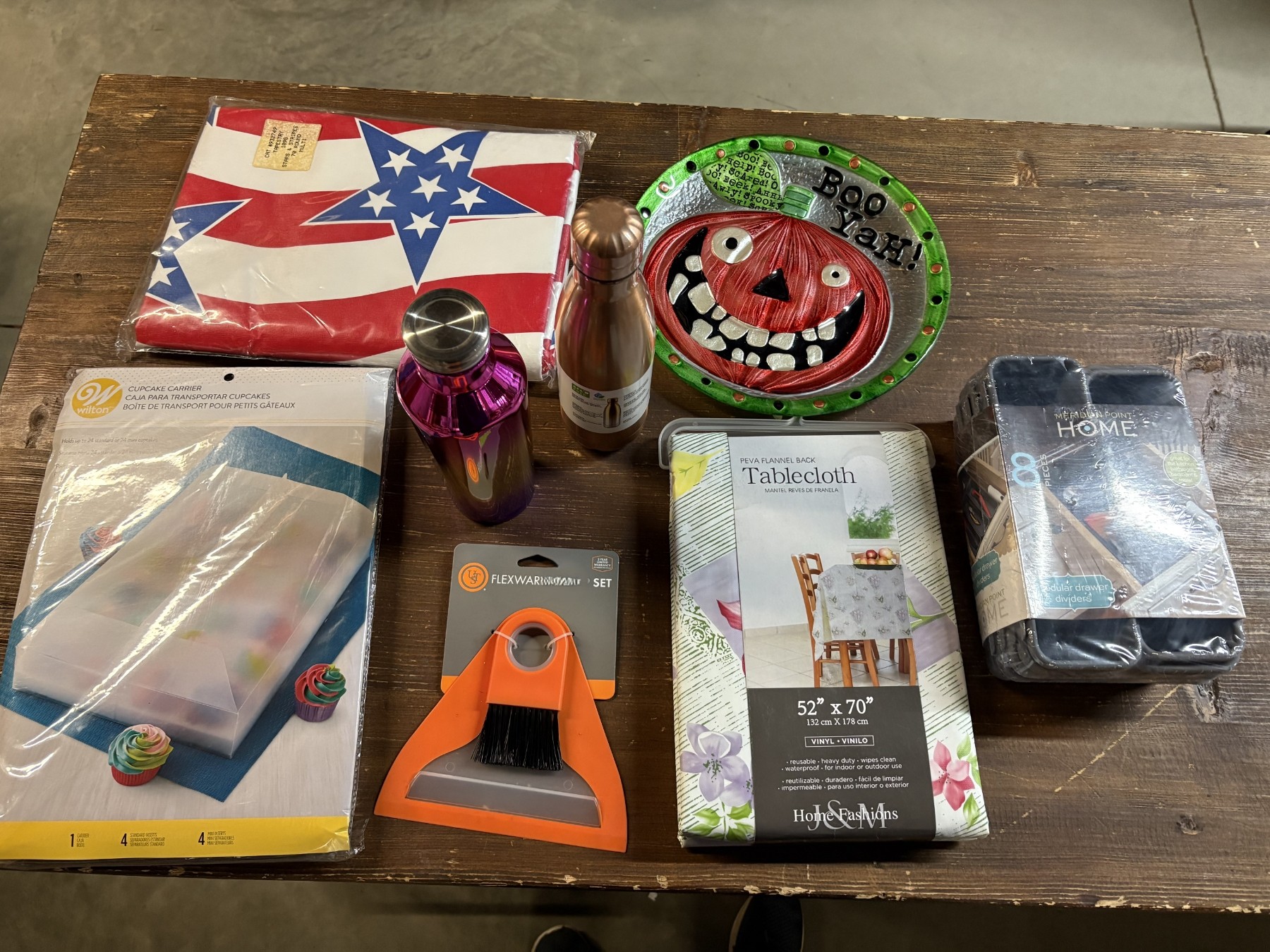 2 Tablecloths - Cupcake Carrier - Flexware Sweep Set - Halloween Plate - 2 Water Bottles - Silverware Divider - 8 Pieces