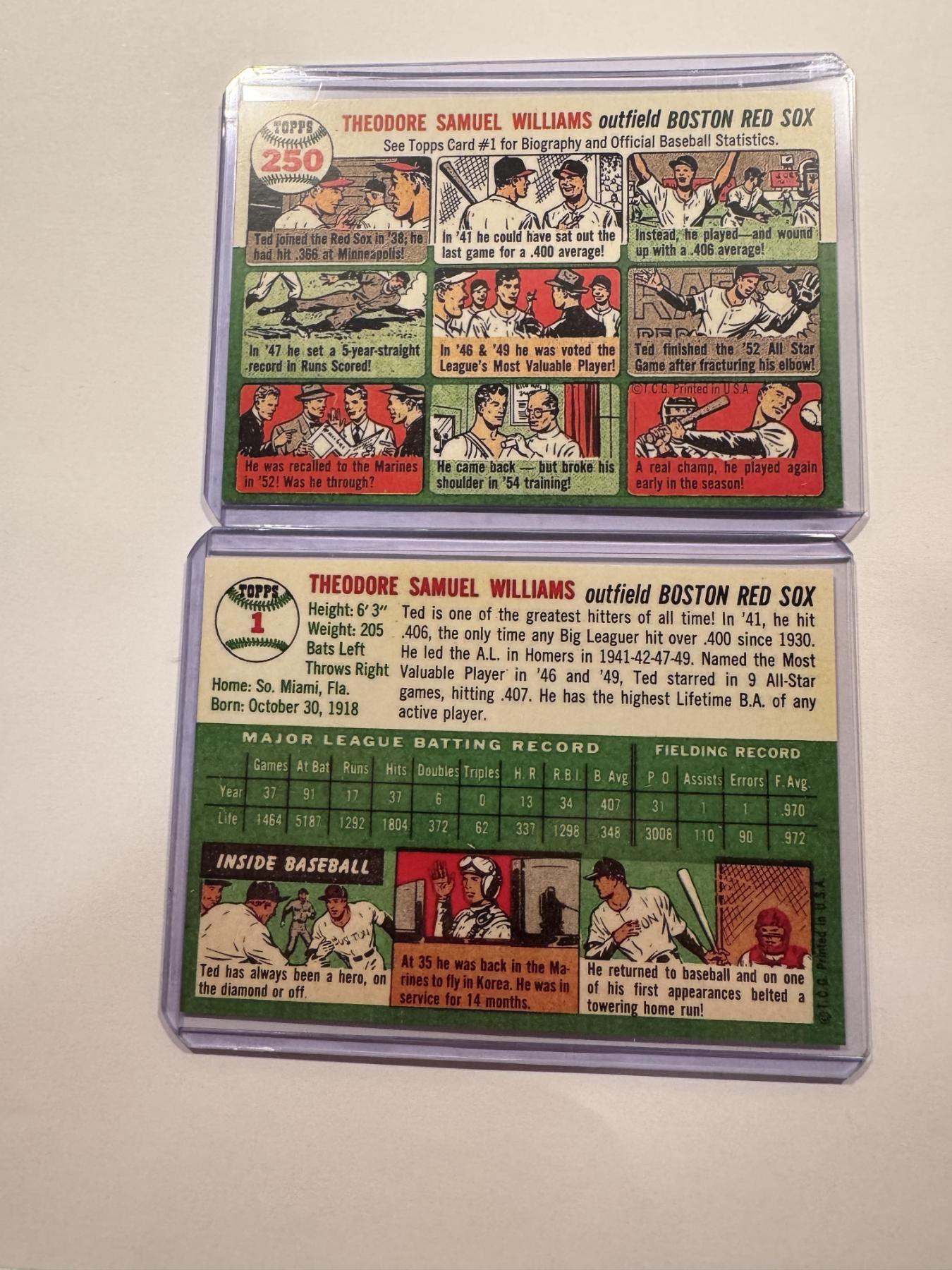 2 - Ted Williams Boston Red Sox Archive Classics Baseball Cards In Protective Holders - Mint Condition