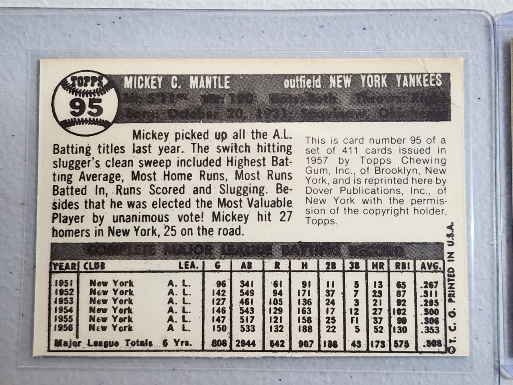 (2) Topps Mickey Mantle NY Yankees REPRINT Baseball Cards