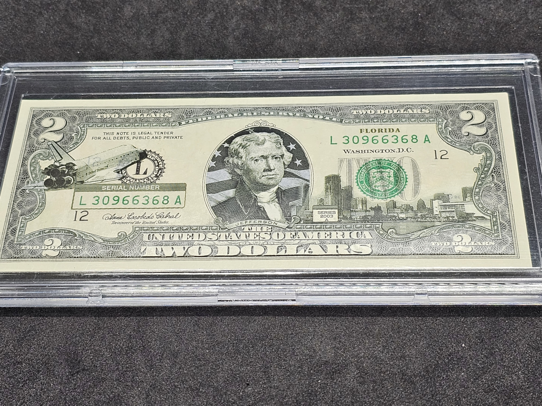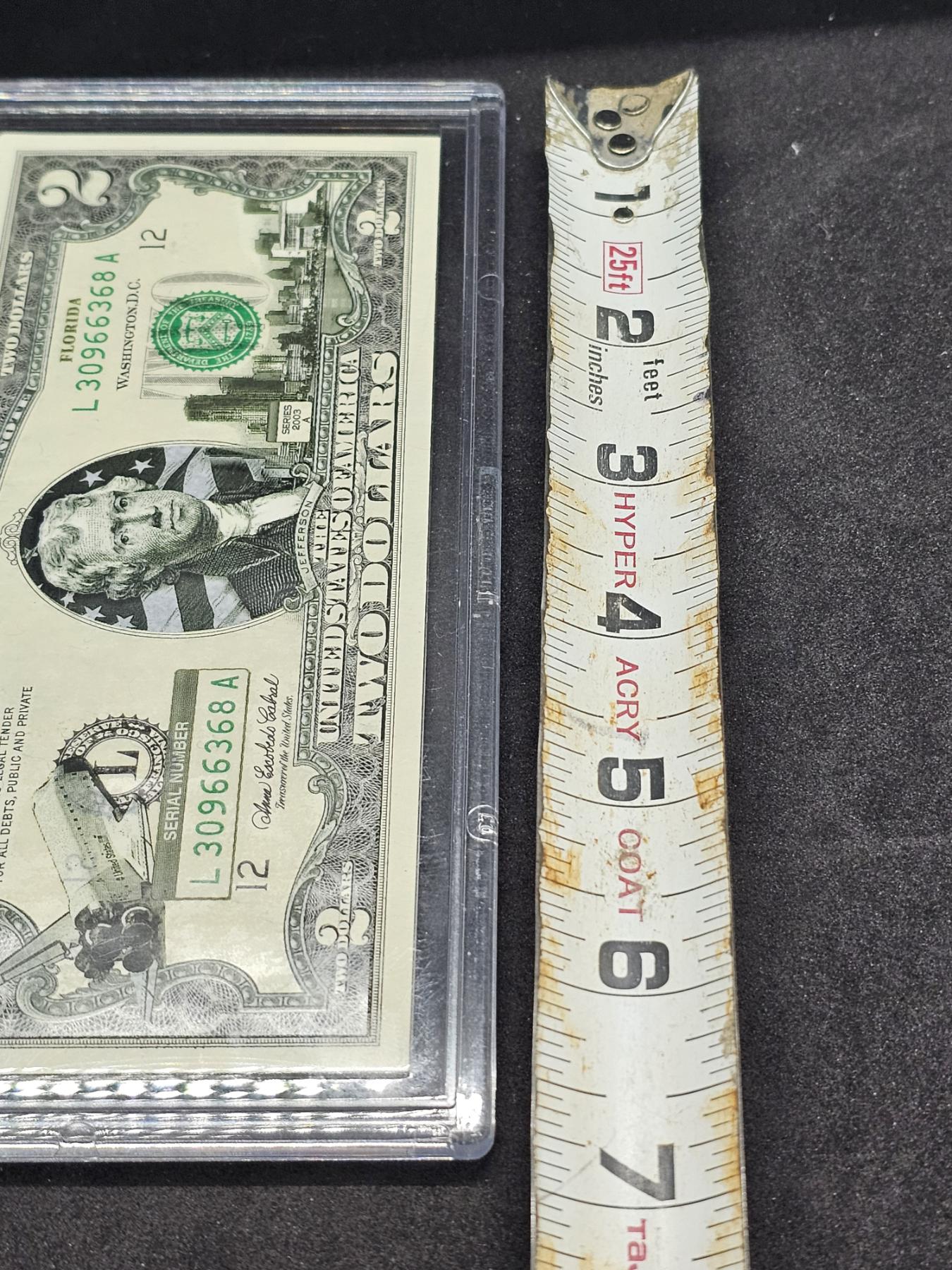 $2 (Two Dollar) Bill with Protective Case - GREAT CONDITION! A MUST HAVE FOR ANY COLLECTOR!!! PLACE YOUR BID TODAY!!!